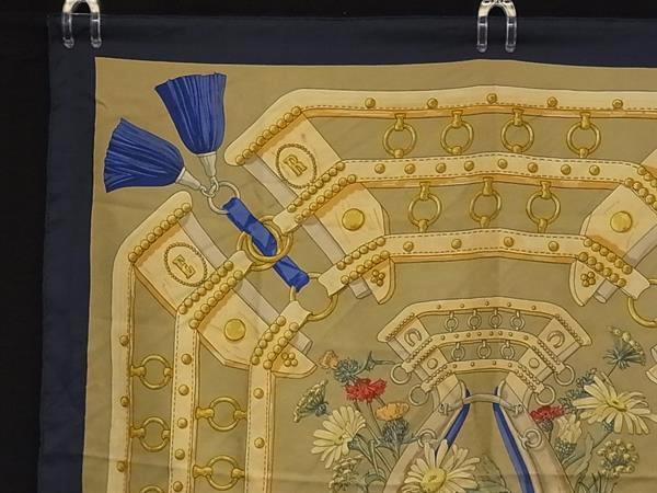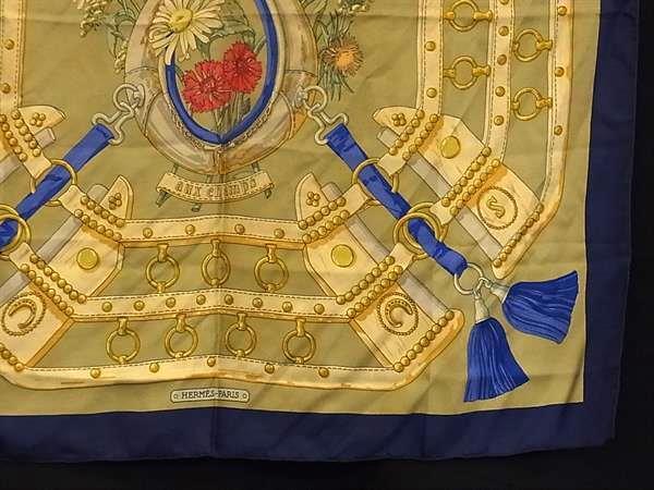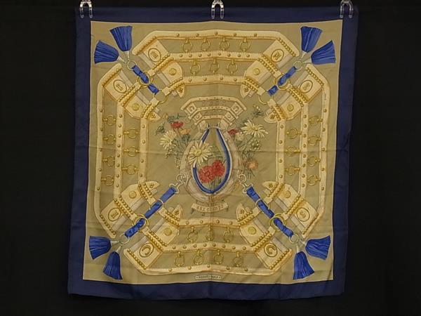 1円 HERMES エルメス aux champs 【フィールドへ】カレ90 シルク100% 大判 スカーフ ストール ショール ブルー系×マルチカラー FP6751