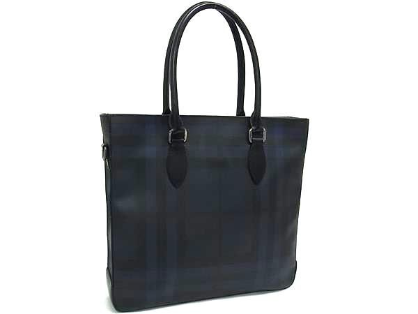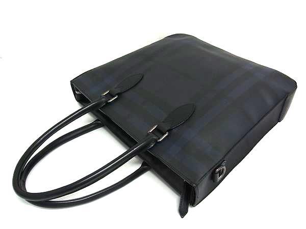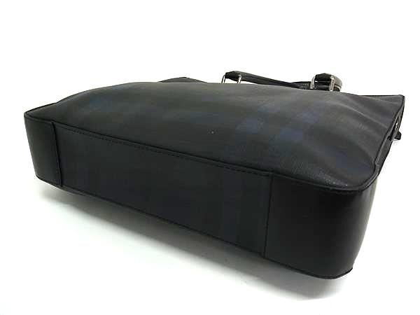 1円 ■美品■ BURBERRY バーバリー ノバチェック PVC×レザー ハンドバッグ トート ショルダー 肩掛け ネイビー系×ブラック系 FU2557