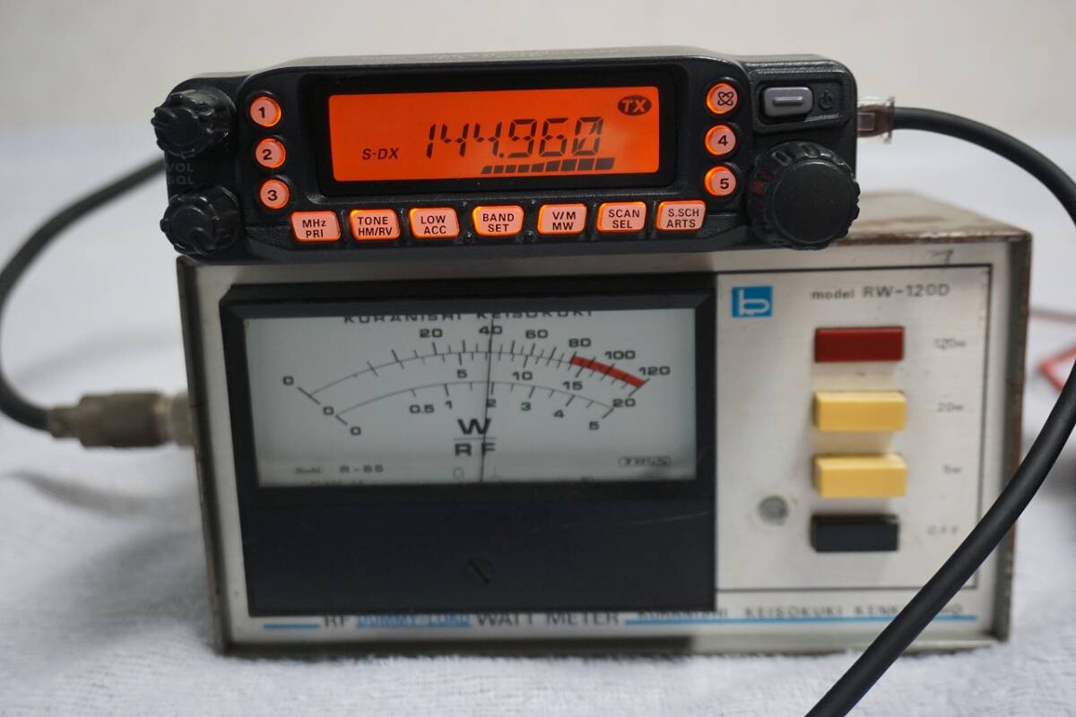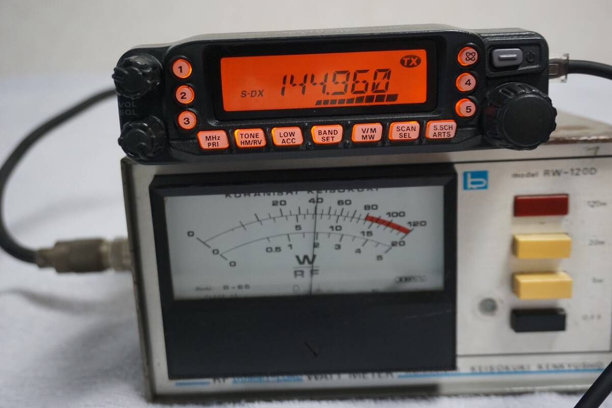 パワー計があてになりませんが約50w近くでております。受信改造されています。エアーバンドは感度いいです。
