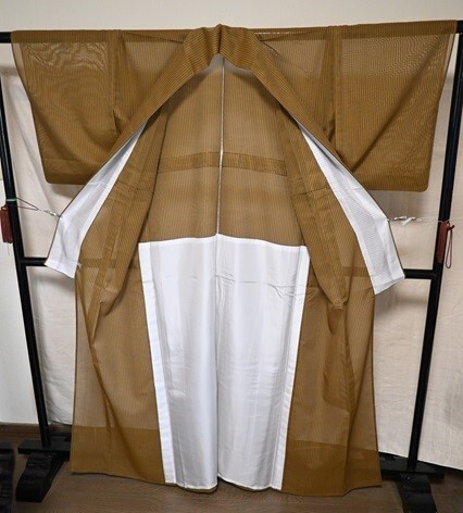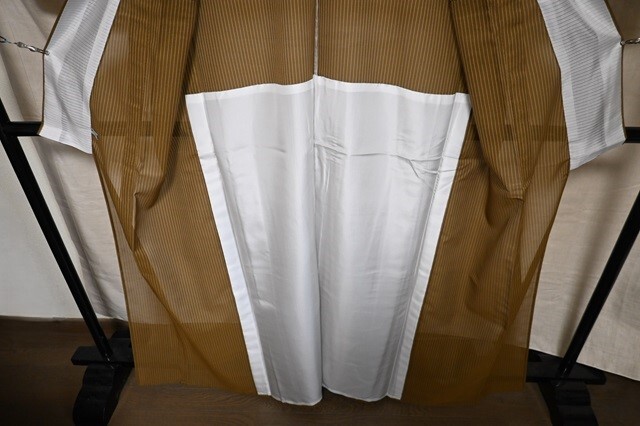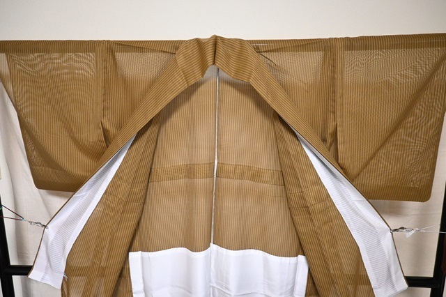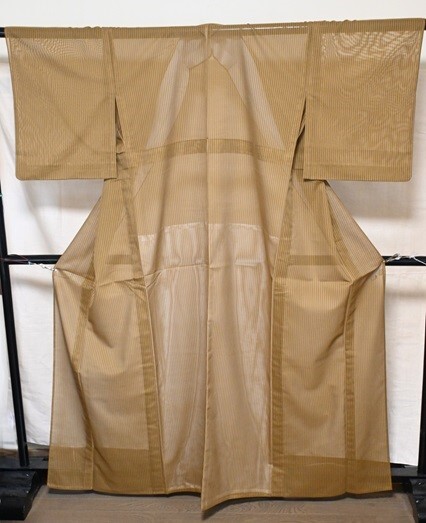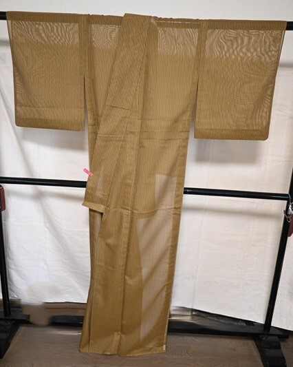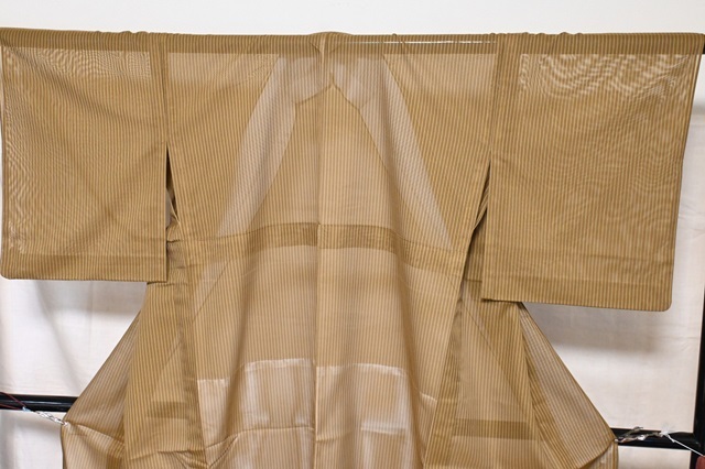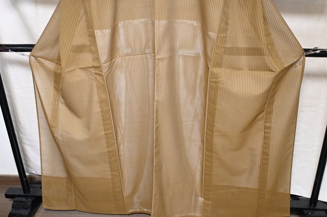 夏用 着物 紗 縞 黄土色 未使用