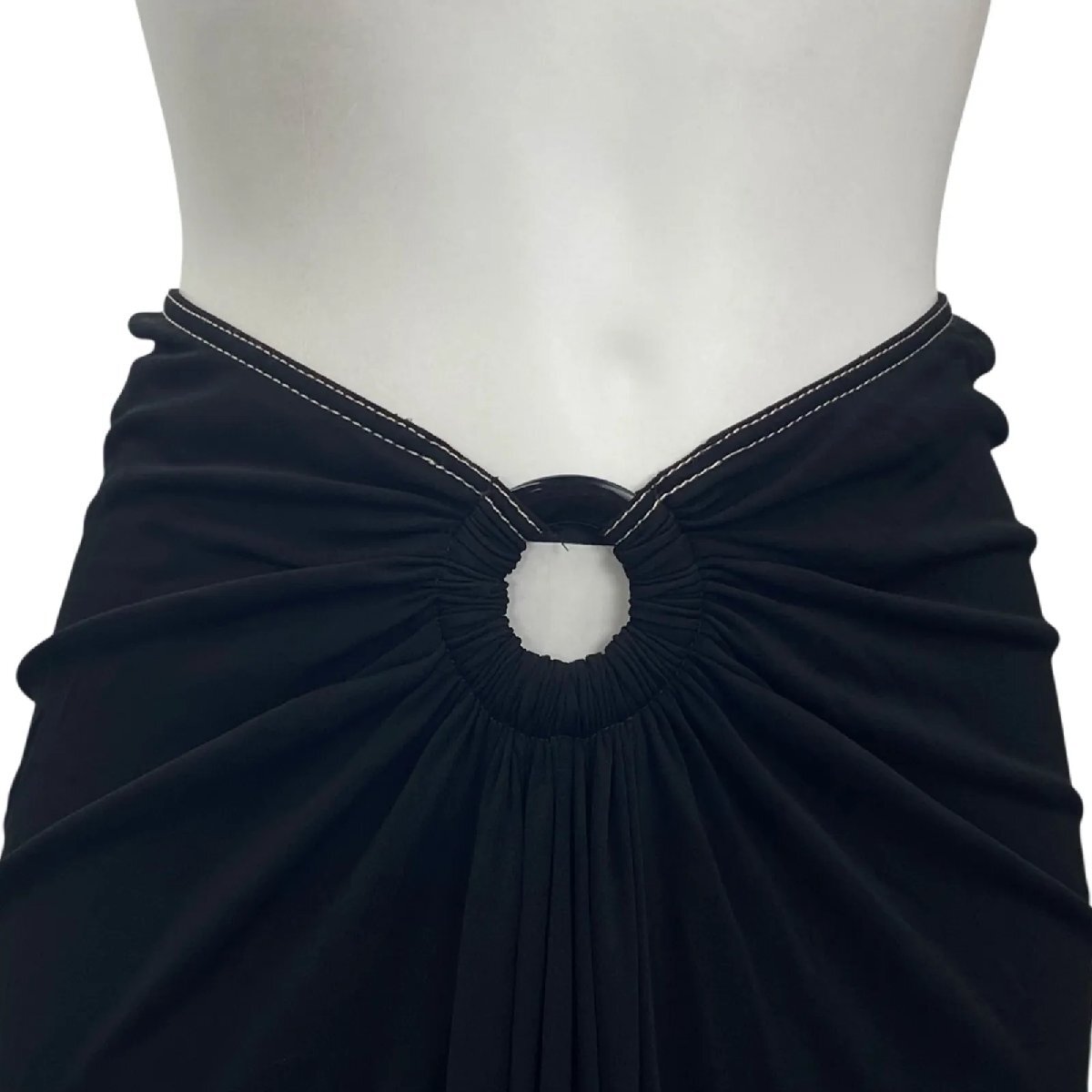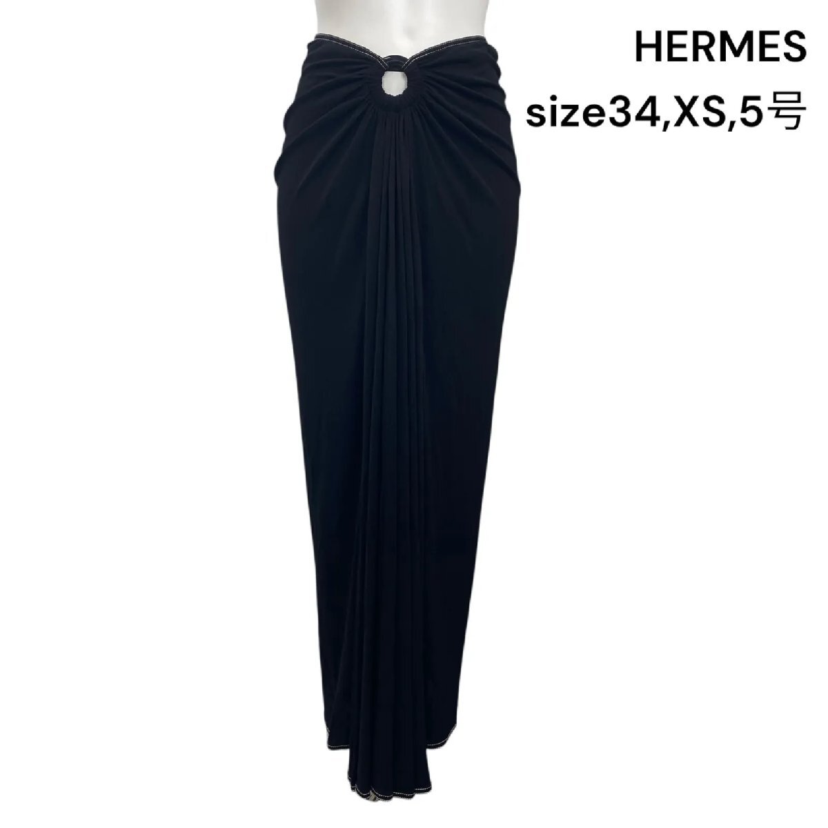 エルメス HERMES スカート ロング ドレープ タイト 装飾リング ブラック 34,XS,5号 レディース S5Q554