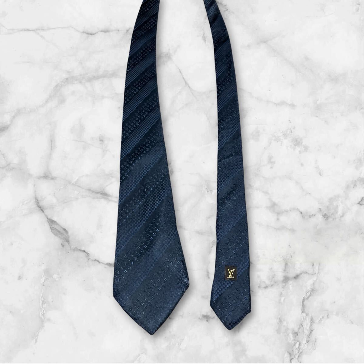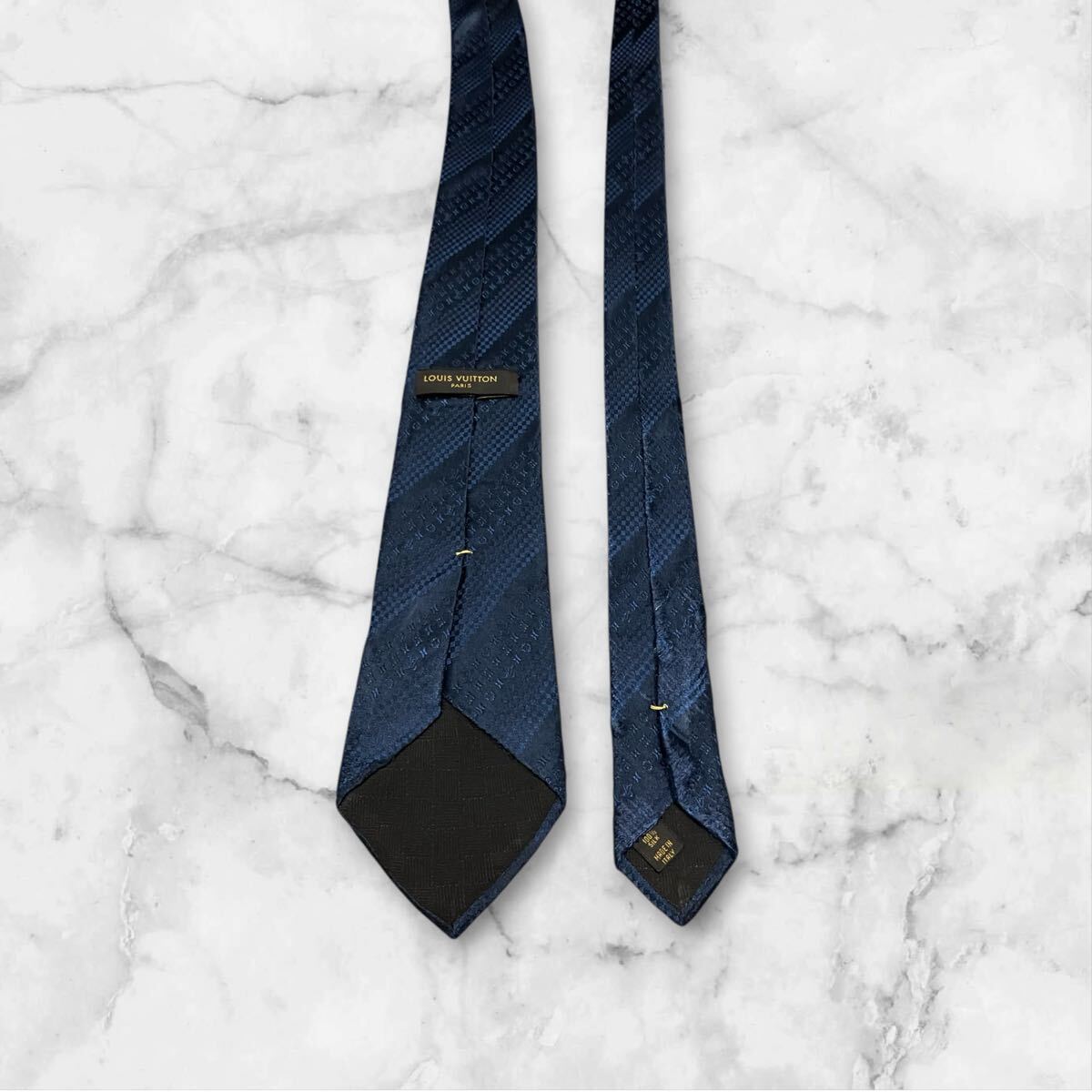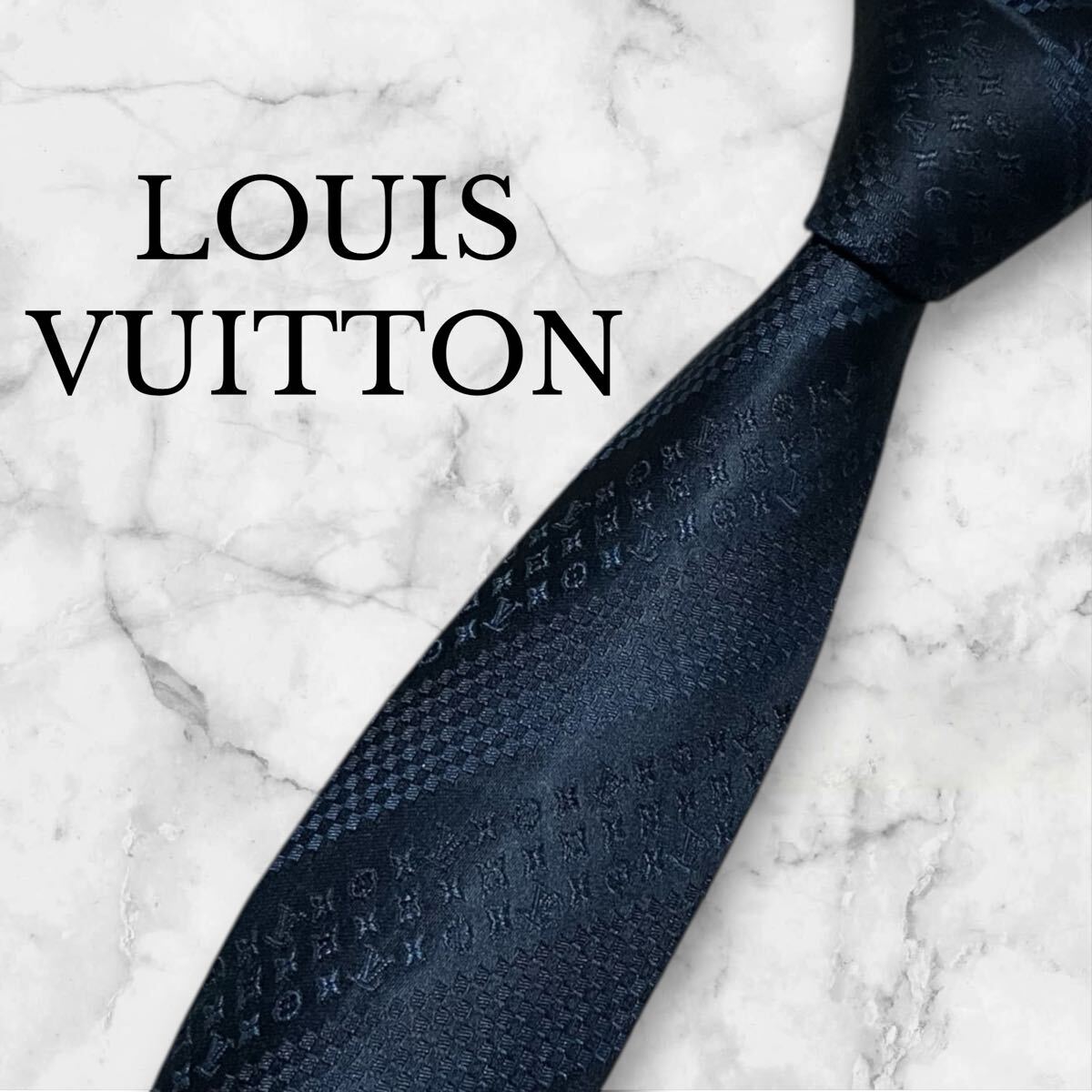 LOUIS VUITTON ルイヴィトン ネクタイ クラヴァット LV ジャガード 光沢 モノグラム スーツ シルク イタリア ブランド 紺 ネイビー