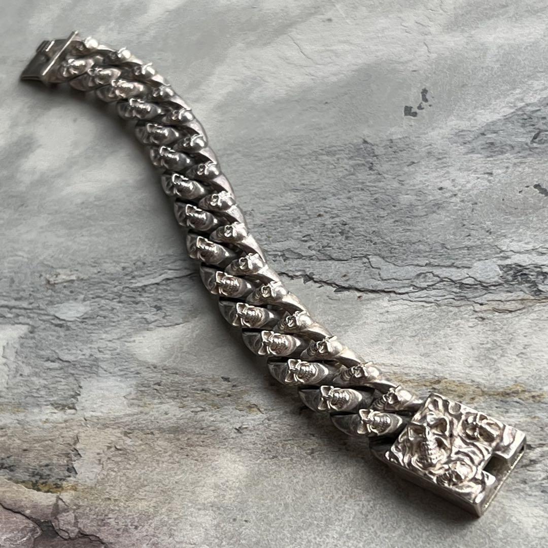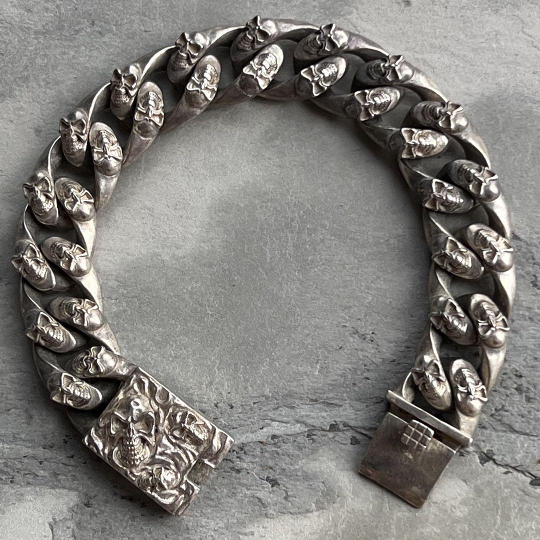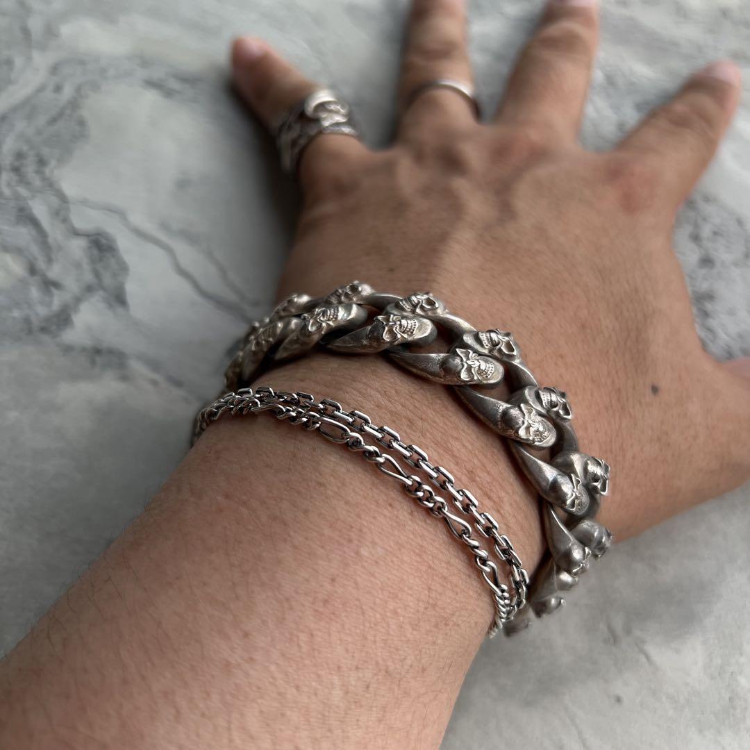 スカルフェイスがずっしりと連なり存在感バツグンなので、これひとつでコーデがキマります。