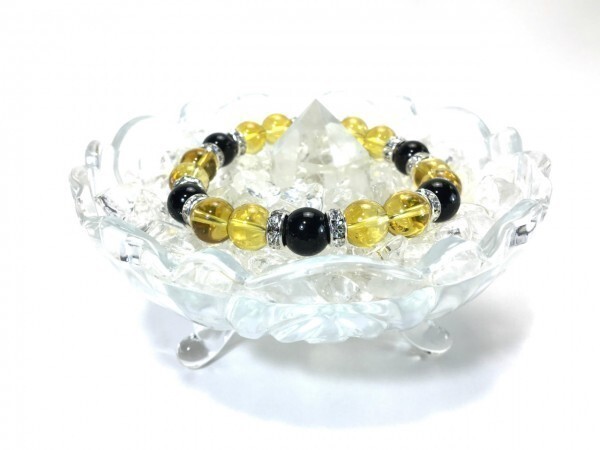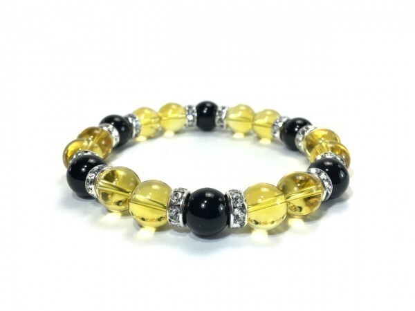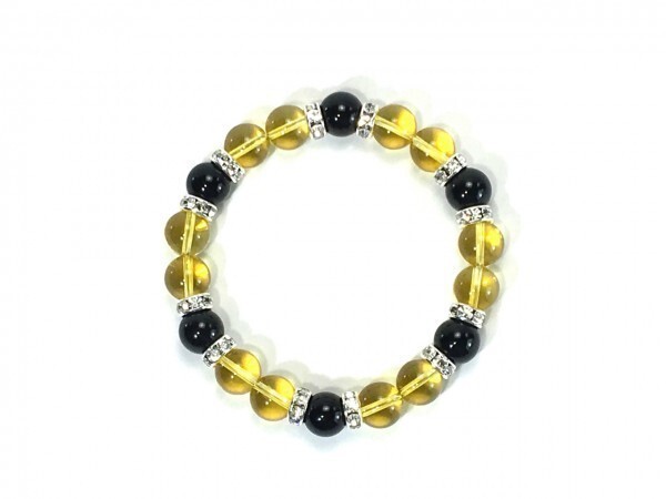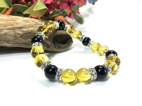 こちらは、シトリンとオニキスを組み合わせたブレスレットです。間にはロンデルを挟み高級感あるデザインに仕上がっています。石大きさは腕にも馴染みやすいように10mm玉で内径約18cm(伸可能)です。数に限りがございますので気になる方はお早めにどうぞ。サイズ調節も可能ですのでサイズ調節の場合は取引ナビにてご一報くださいませ。(サイズ調節無料です)