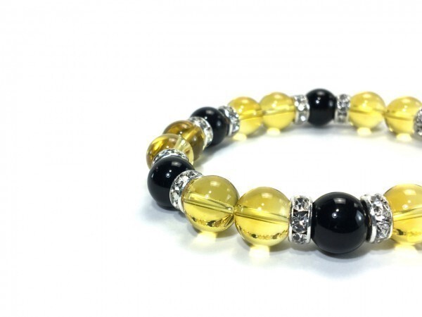 シトリン×オニキス パワーストーン ブレスレット 天然石ブレス 10mm (ロンデル:シルバー) メンズ・レディース 浄化済み