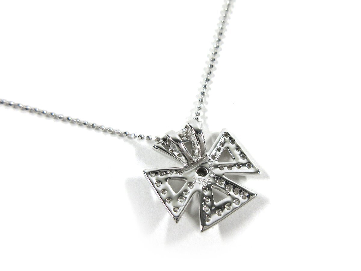 ホワイトゴールド素材を使用し、プレート状のクロスモチーフにメレーダイヤモンドが