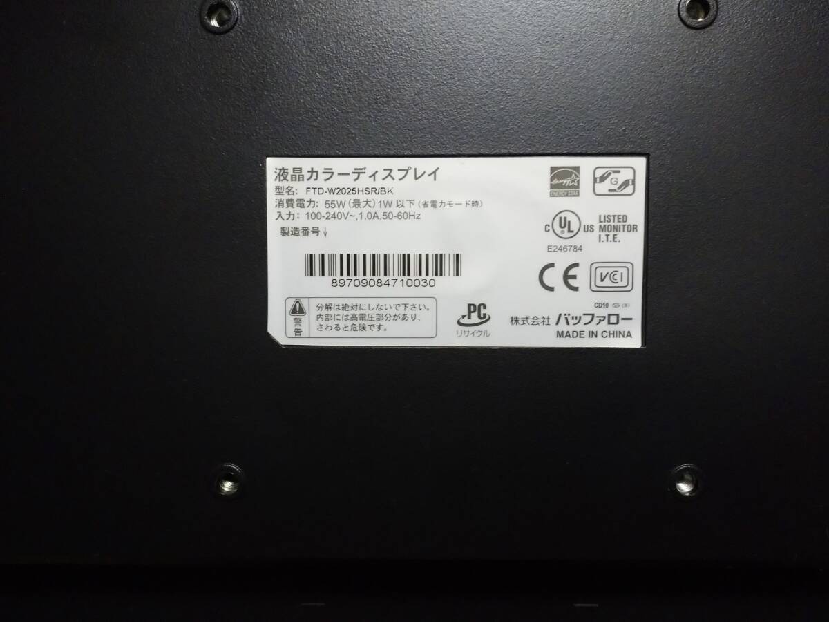 【ジャンク】20.1型ワイド HDCP対応 スピーカ搭載 液晶ディスプレイ BUFFALO FTD-W2025HSR/BK 【部品取り用】