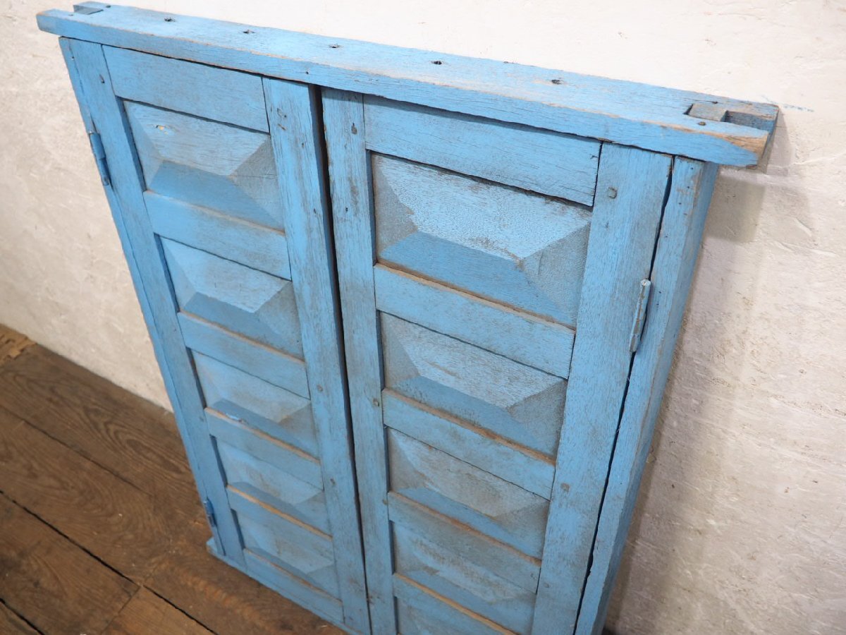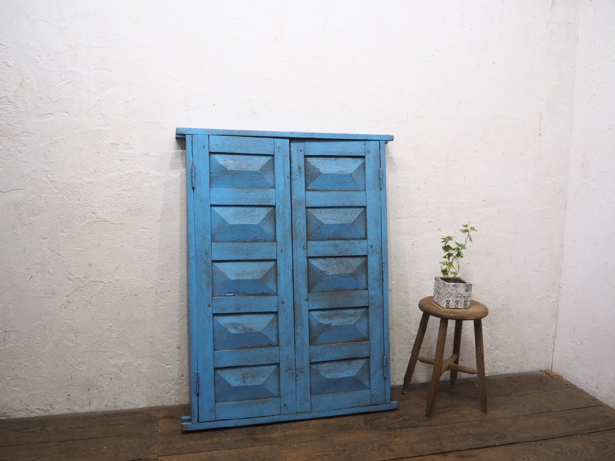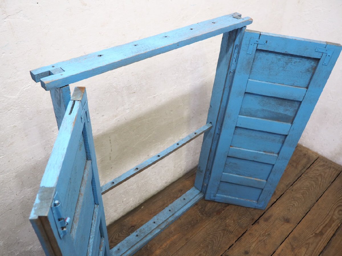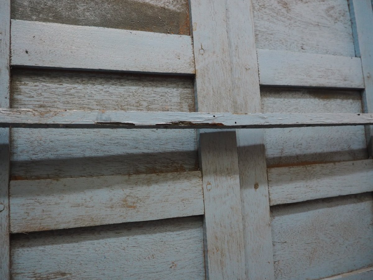 タS0536◆【H110cm×W84,5cm】◆木枠付き◆ペンキの剥げた古い木製ヴォレー◆建具 門扉 ルーバー レトロ ヴィンテージ アンティークL庭