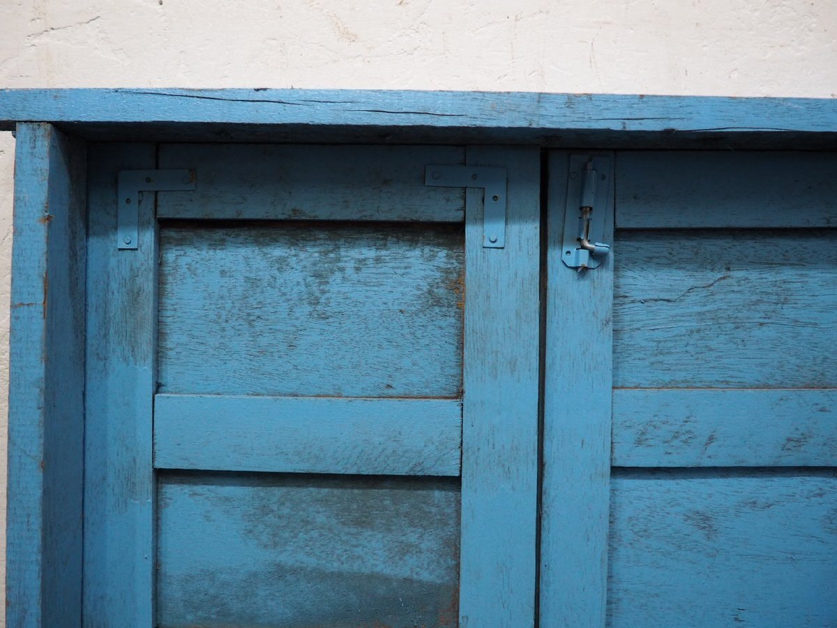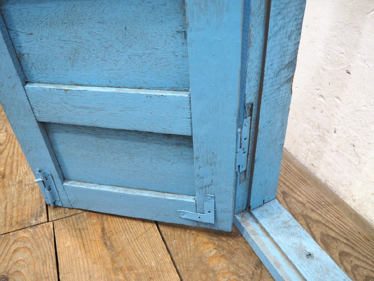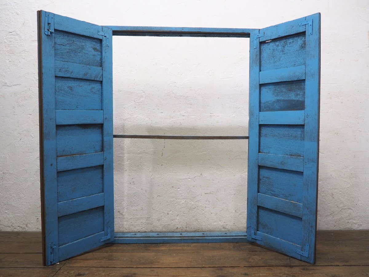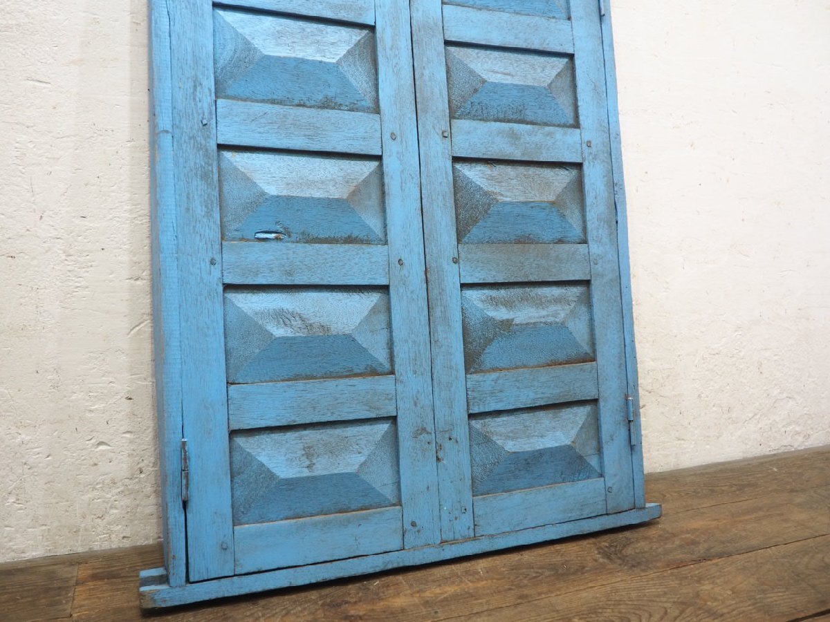 タS0536◆【H110cm×W84,5cm】◆木枠付き◆ペンキの剥げた古い木製ヴォレー◆建具 門扉 ルーバー レトロ ヴィンテージ アンティークL庭