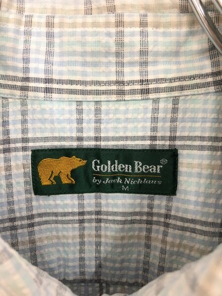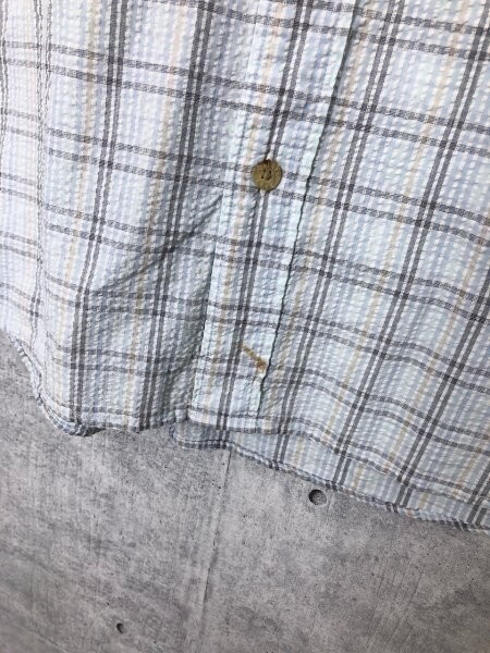 GOLDEN BEAR ゴールデンベア メンズ ポケット付き チェック シアサッカー 半袖シャツ M 薄い水色ベージュグレー です。