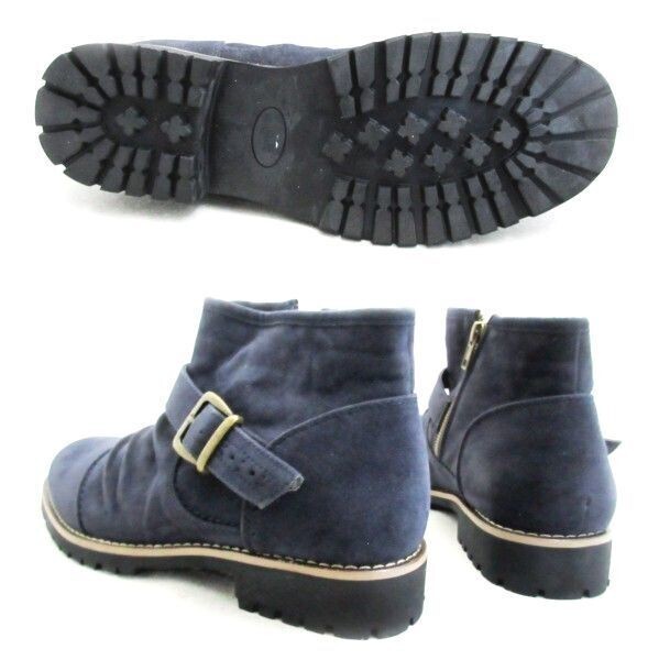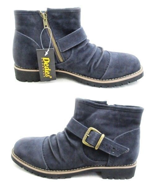 1円~L0126新品Dedesサイドジップアップ/ベルトショートブーツ25.5㌢NAVY♂