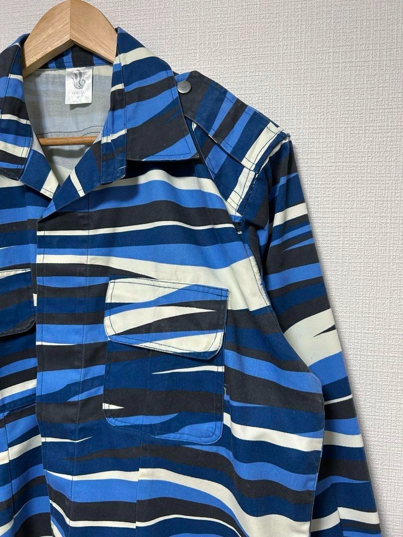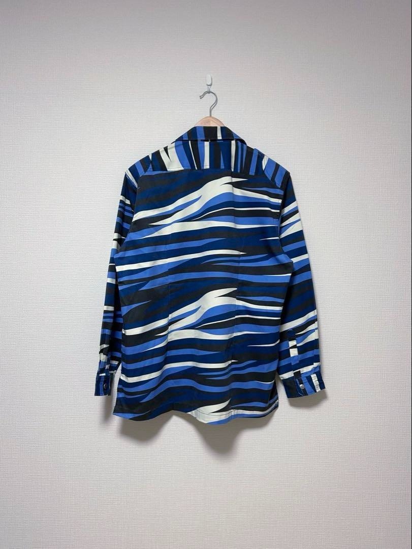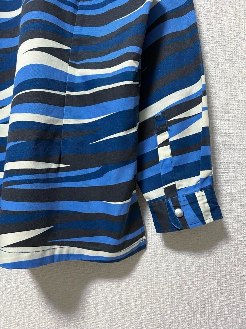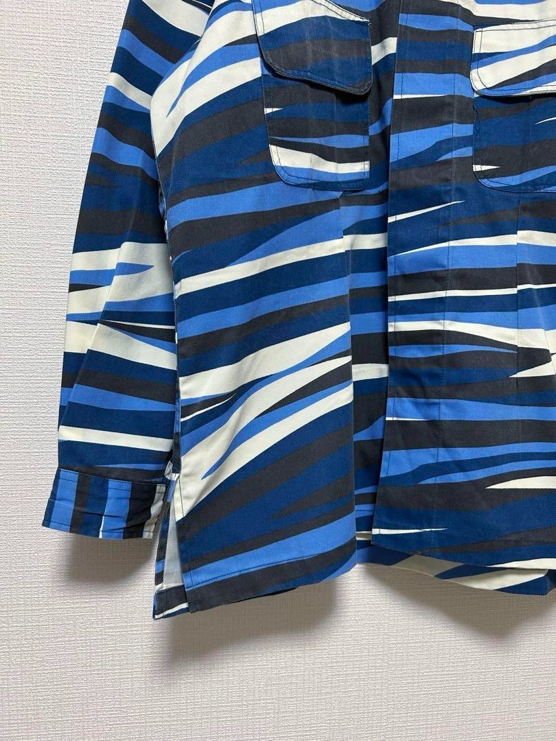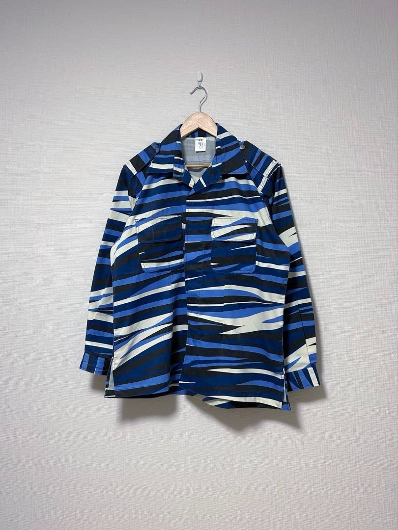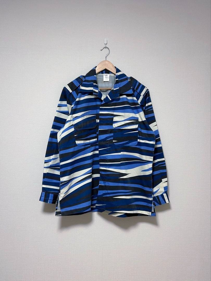 マレーシアの国民訓練プログラム(PLKN)の迷彩シャツ。青・白・黒のカモ柄、ミリタリーシャツのディテールです。