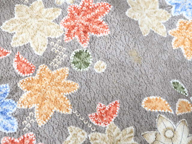 リサイクル商品のため、衿にマジックテープと右袖、衿、胴裏に薄汚れがございますが着用可能なお品です。 地色は 茶です。 1枚目の画像が近いお色かと思われます。 素材は正絹です。 |