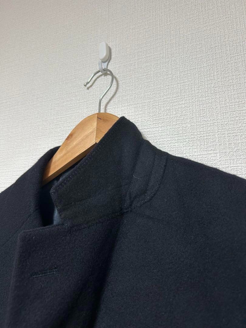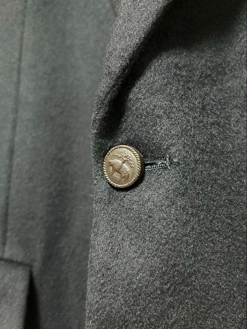 厚手ウール素材のメルトン生地。ボタンは羊の彫刻が施されたボタンが使用されています。