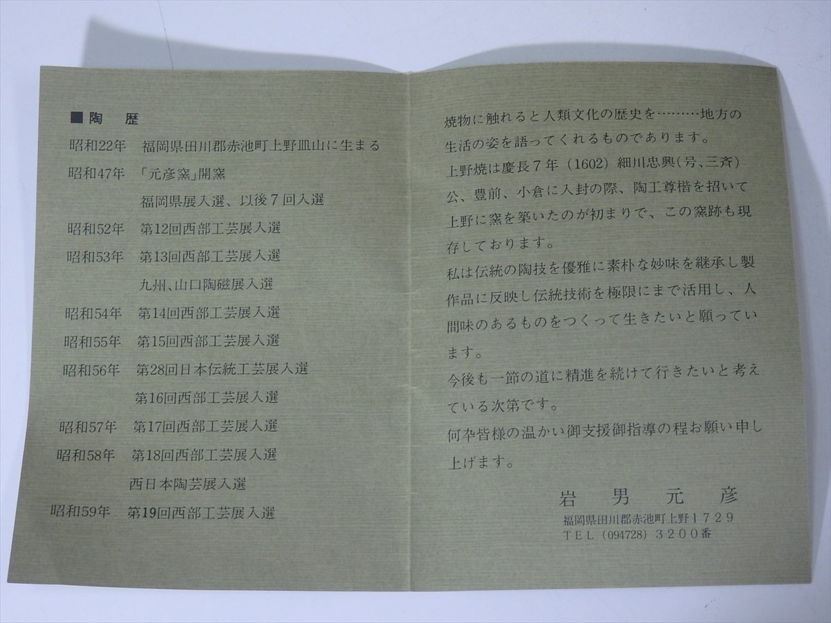 ★岩男元彦【上野焼 水指 共箱】木製塗り蓋 直径17cm 高さ17.7cm 茶道具 茶器 福岡 あがのやき