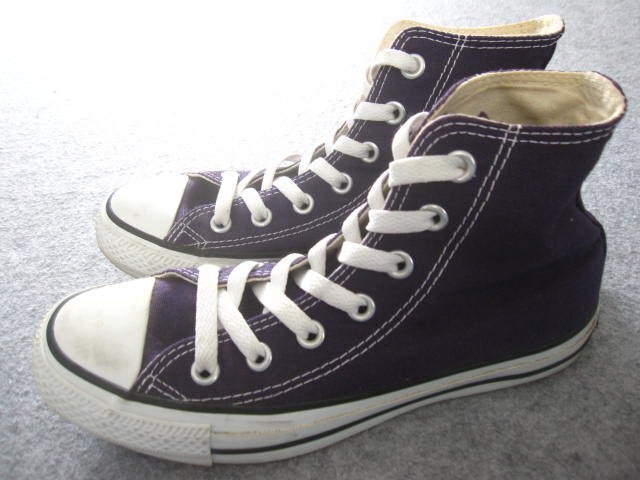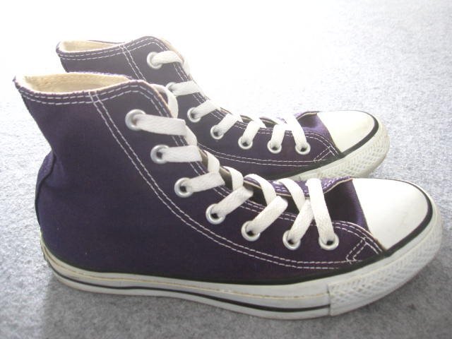 コンバースオールスターハイカット パープル 4(23cm)。ユーズドになります、ソールの減りは少ないです、保管時の汚れございます。ノークレームノーリターンノーキャンセルでお願いします。