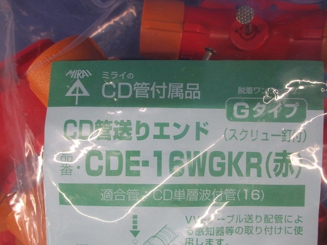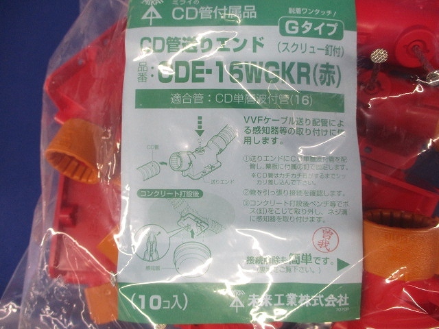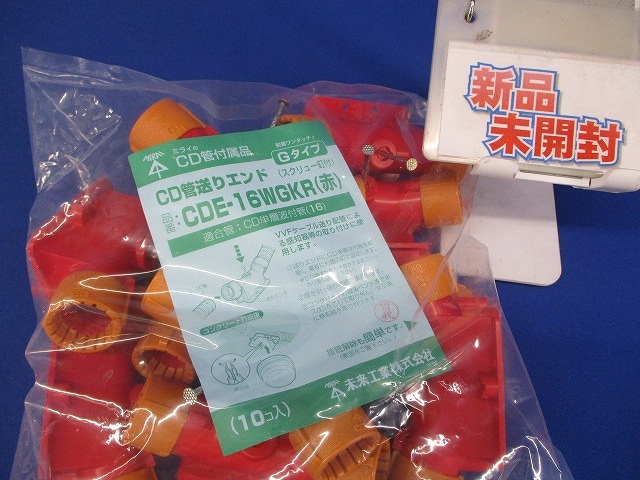 送りエンド(Gタイプ・スクリュー釘付)CD単層波付管16用 赤 10個入 未来工業 CDE-16WGKR-10
