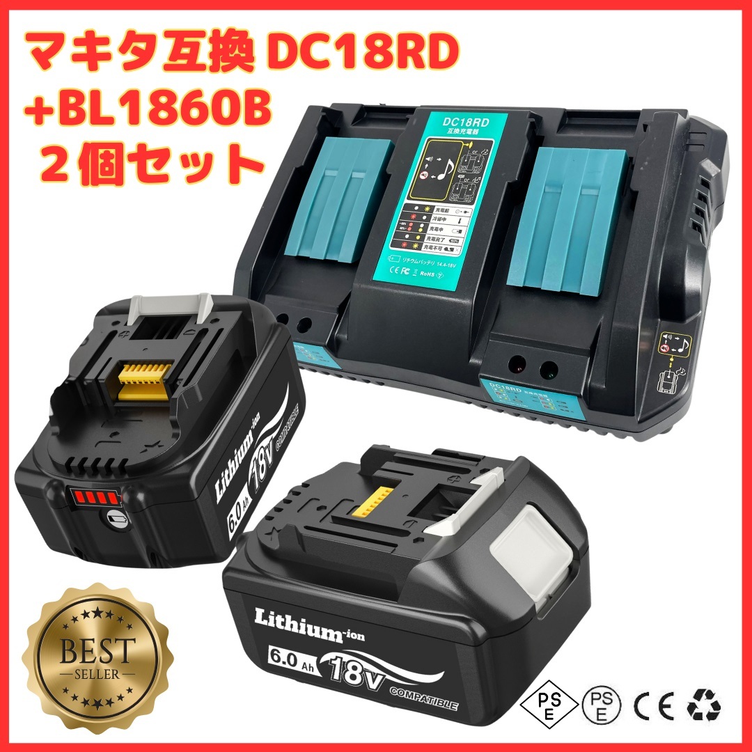 (A) マキタ 互換 DC18RD + BL1860B (1台と2個)  2口充電器+バッテリー セット 残量表示付き