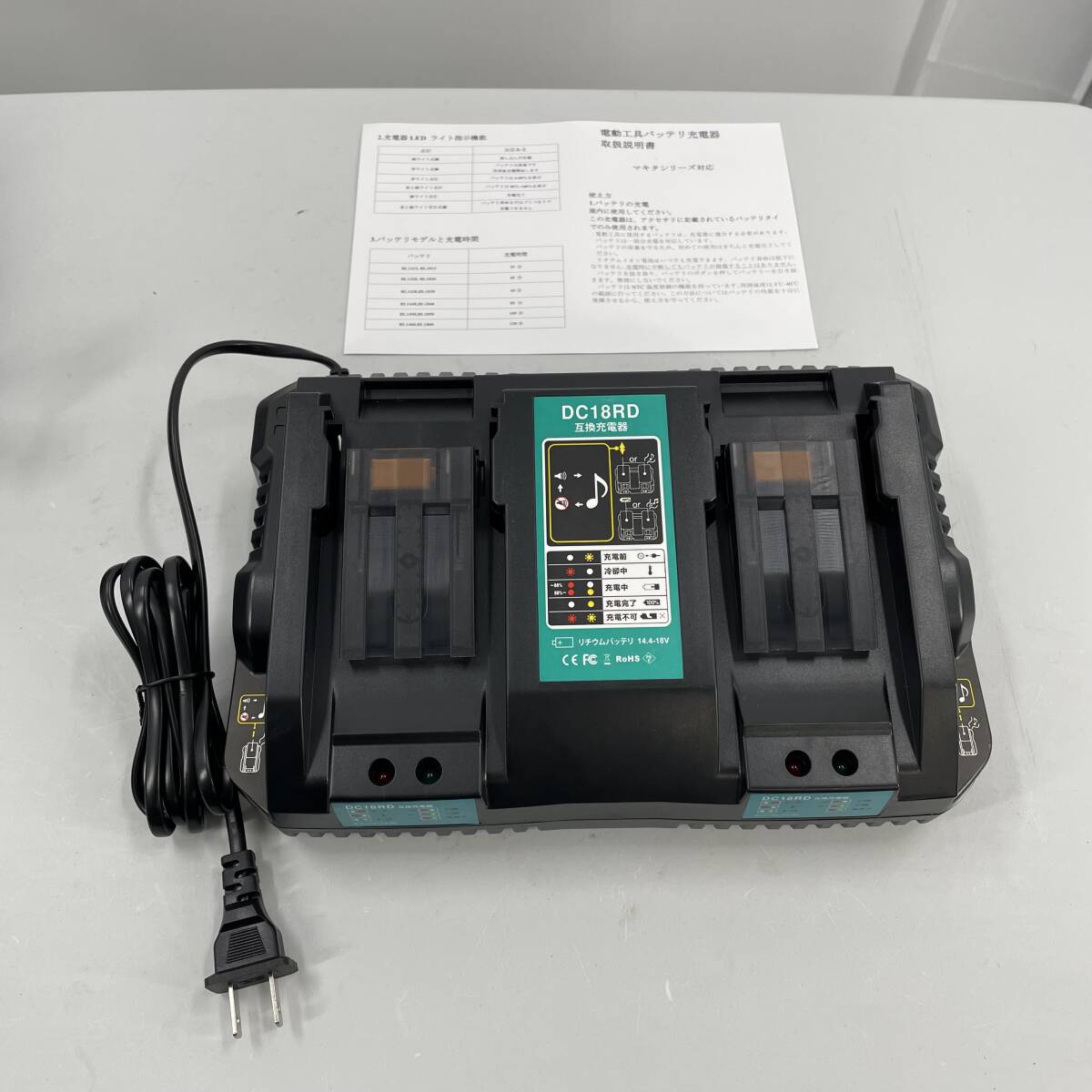 DC18RDはDC18RC(1口)×2とほぼ同じです、14.4V・18Vのマキタバッテリーに対応、2個バッテリー同時に充電可能。本製品は純正品ではなく互換品です。