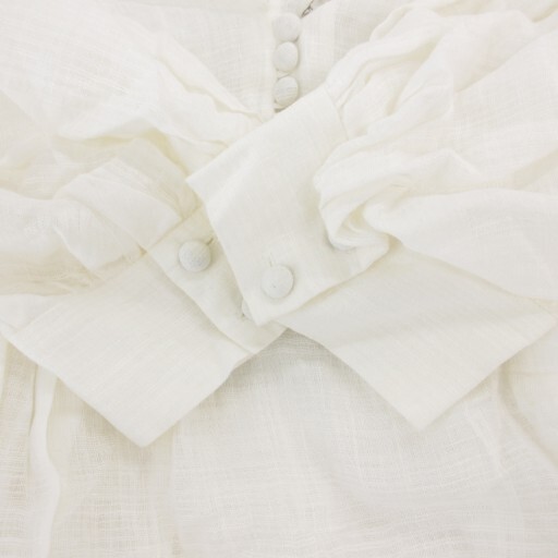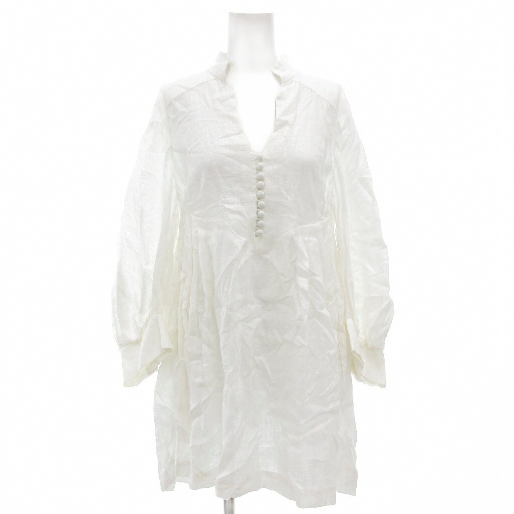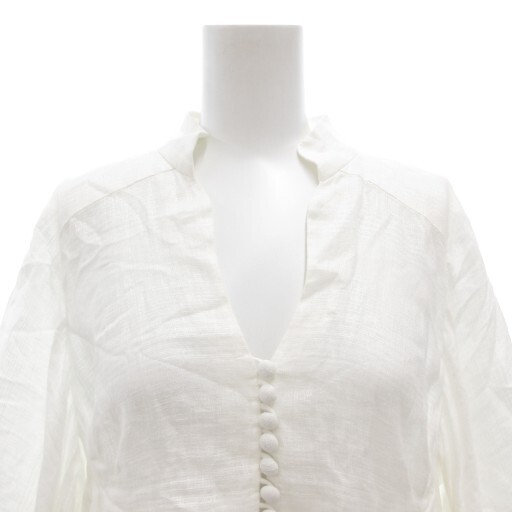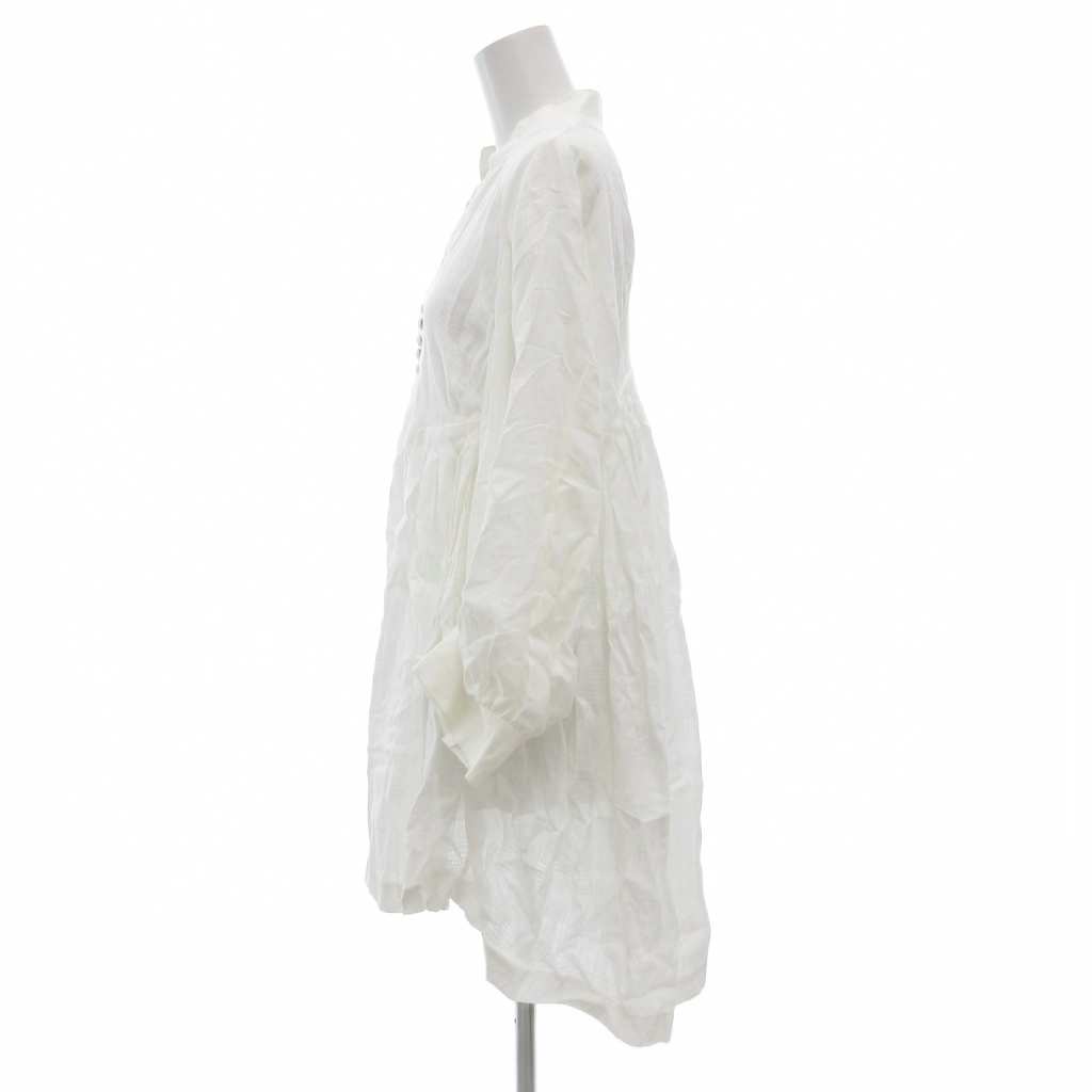 マメクロゴウチ Mame Kurogouchi リネンチュニック ブラウス 長袖 キーネック チェック 1 白 ホワイト /GV ■GY19 レディース