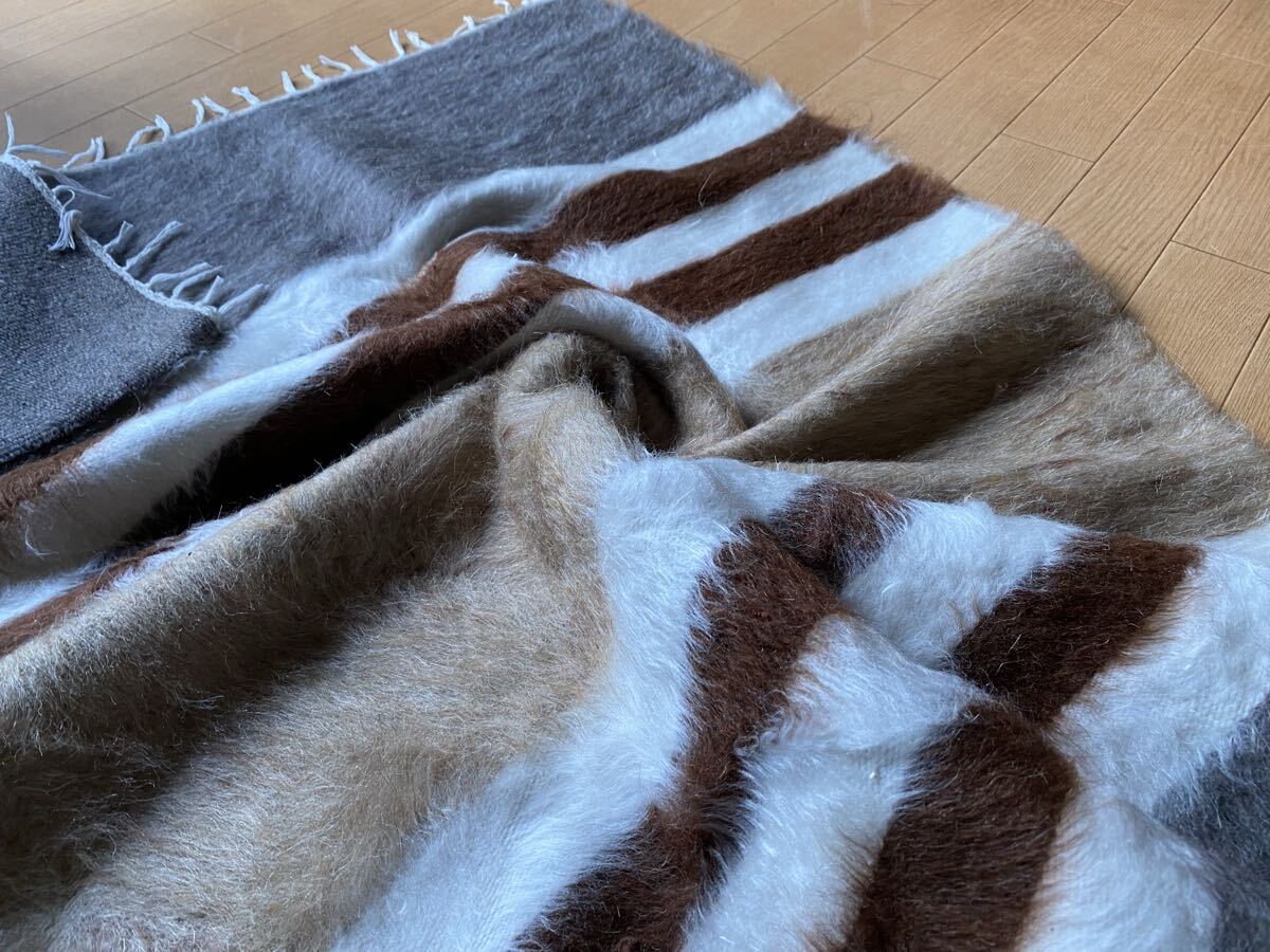 四季を通じてとても便利!トルコの東140年前から織られているアンゴラ山羊の毛布シイルトバッタ二エ!ナチュラルカラーのボーダー送料込