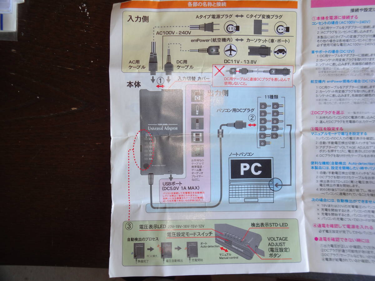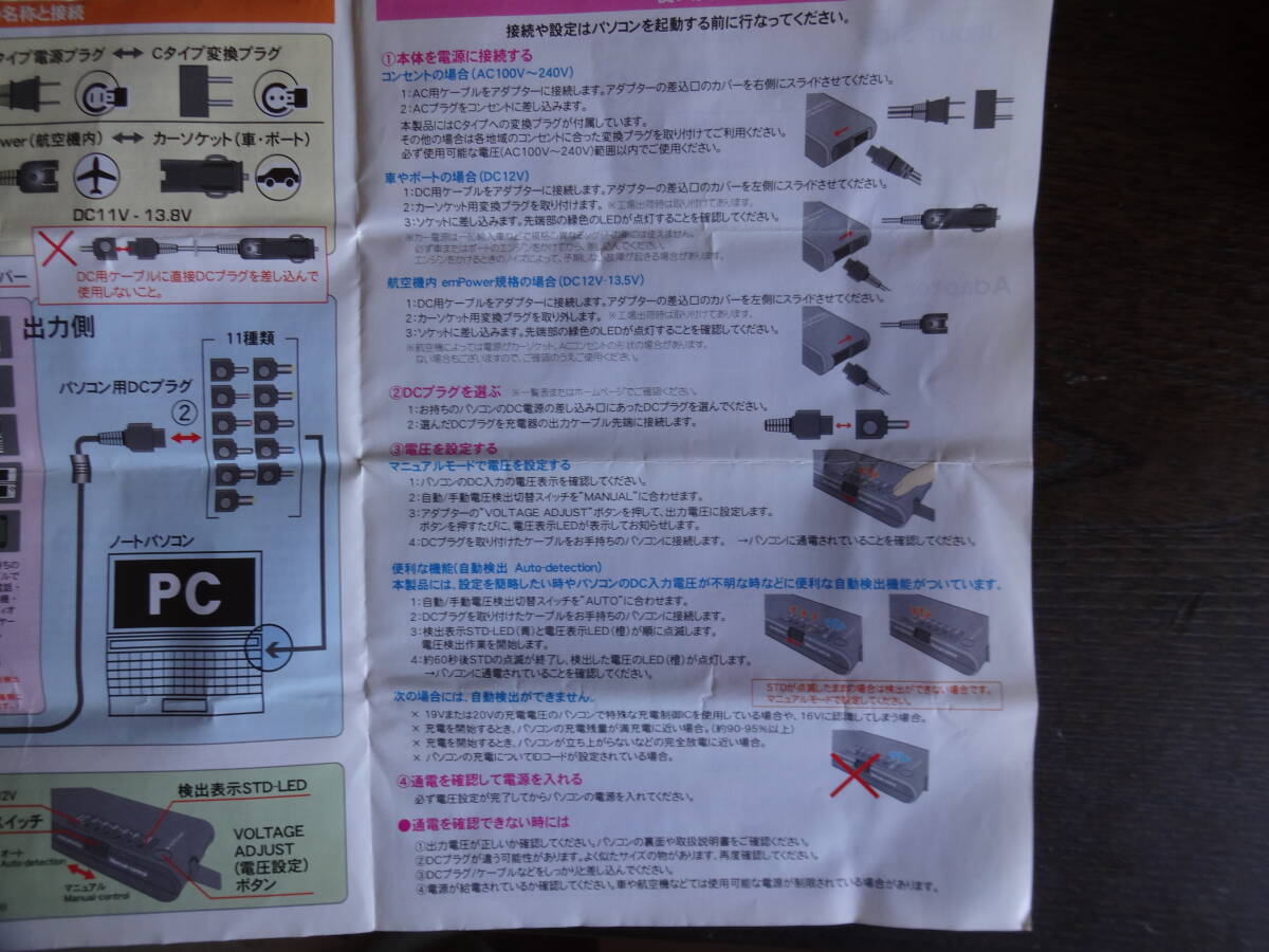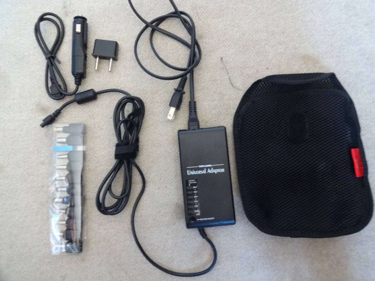 全てのPCに対応出来る電源アダプター PC用出力DCプラグ11種類 入力:AC100~240V 50/60Hz、DC12V  出力:DC11~13.8V 8.0A USBポート付き 携帯用メッシュケース入り、収納時:幅150x深さ200x厚み50mm 和英取扱説明書付き