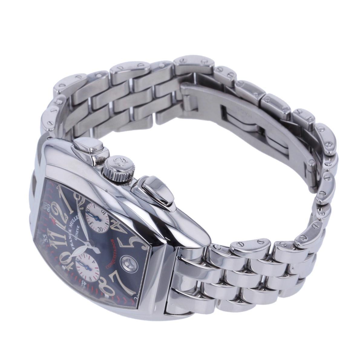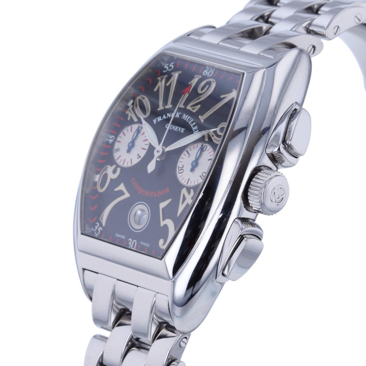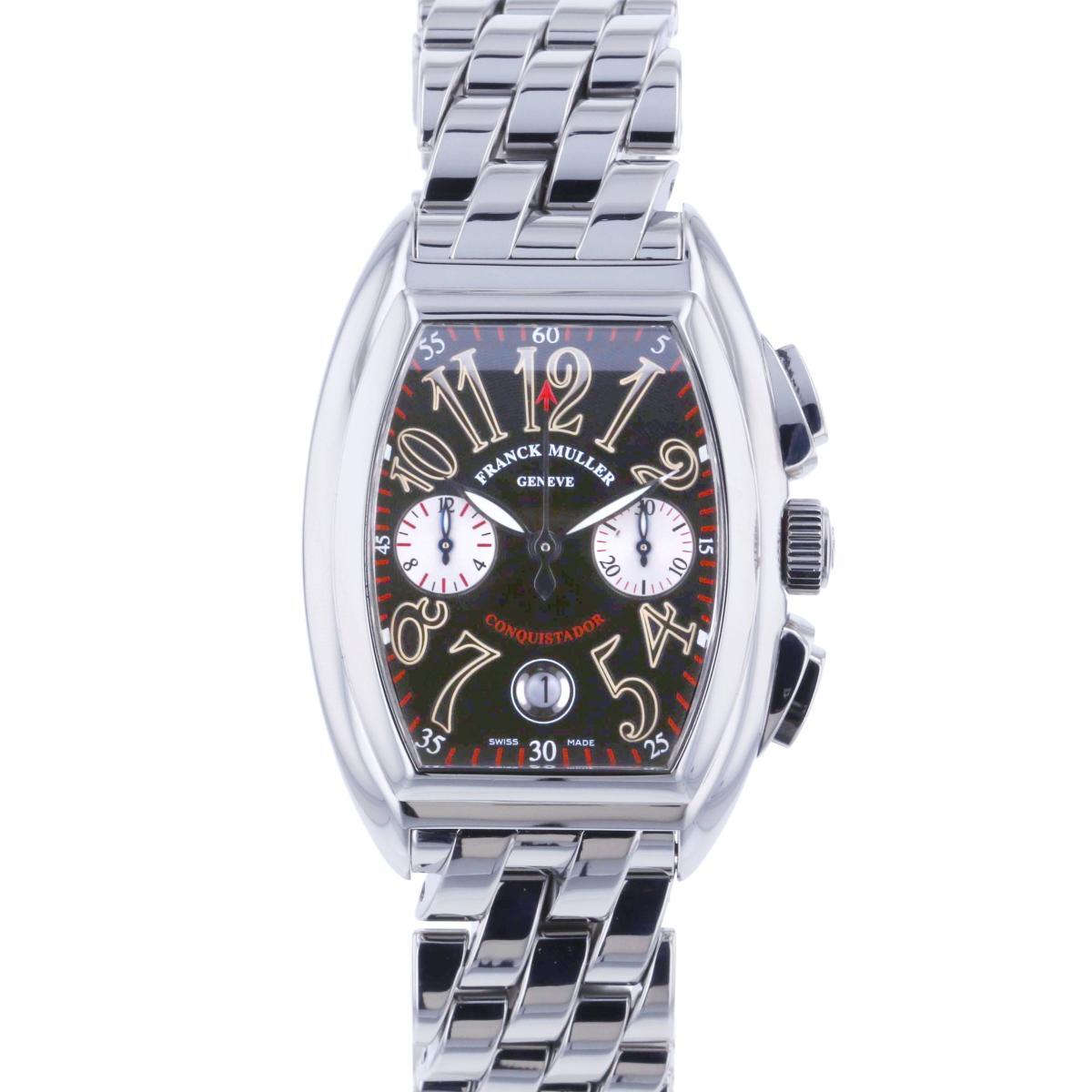 コンキスタドール "3rd Model " クロノグラフ" です。"CONQUISTADOR" は1998年に発表され、フランク ミュラーの名をより広く世界に知らしめた云わば代表作のひとつです。立体的に作り込まれたコンキスタドールのトノウ・ケースは、従来のトノウ・カーベックスのクラシカルなラインとは対照的に近未来的なダイナミズムを感じさせる迫力のあるフォルムが特徴です。他のどんな腕時計にもないフィット感を持ち、繊細さを残しながらも頑強なリストウォッチにふさわしい意志の強さを感じさせます。 商品状態:専門業者にて仕上げ済商品となっておりますが、多少小傷がございます。 付属品:外箱/内箱/ギャラ(2005.5購入) 【注】店頭展示商品となっております。 御来店して頂いたお客様にも手に取ってご覧頂いております。 ・used品の特性上、敏感な方や神経質な方、気になる方は必ず、 ご注文いただく前に当店にお問い合わせ下さいますよう、お願いいたします。 ※ご購入頂く前に商品詳細画像をご覧くださいませ。 | RANK used:A |