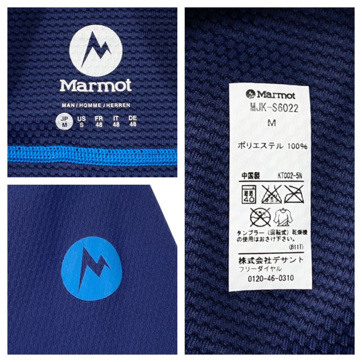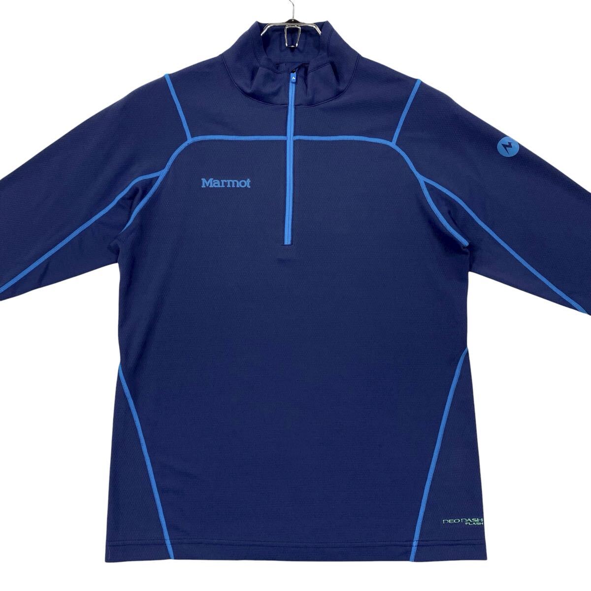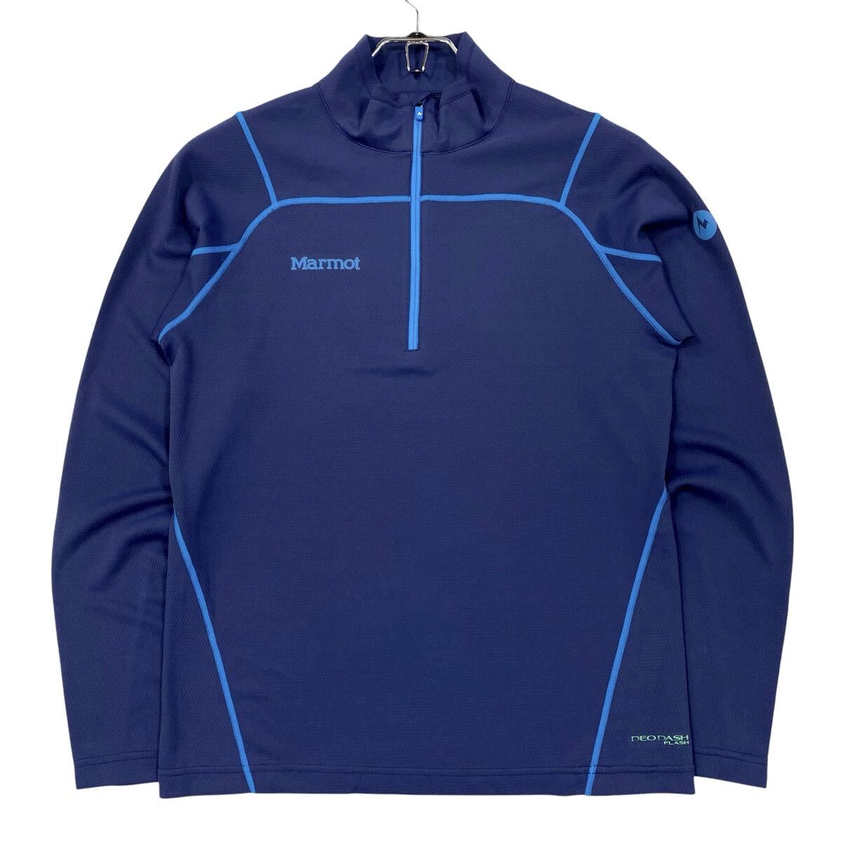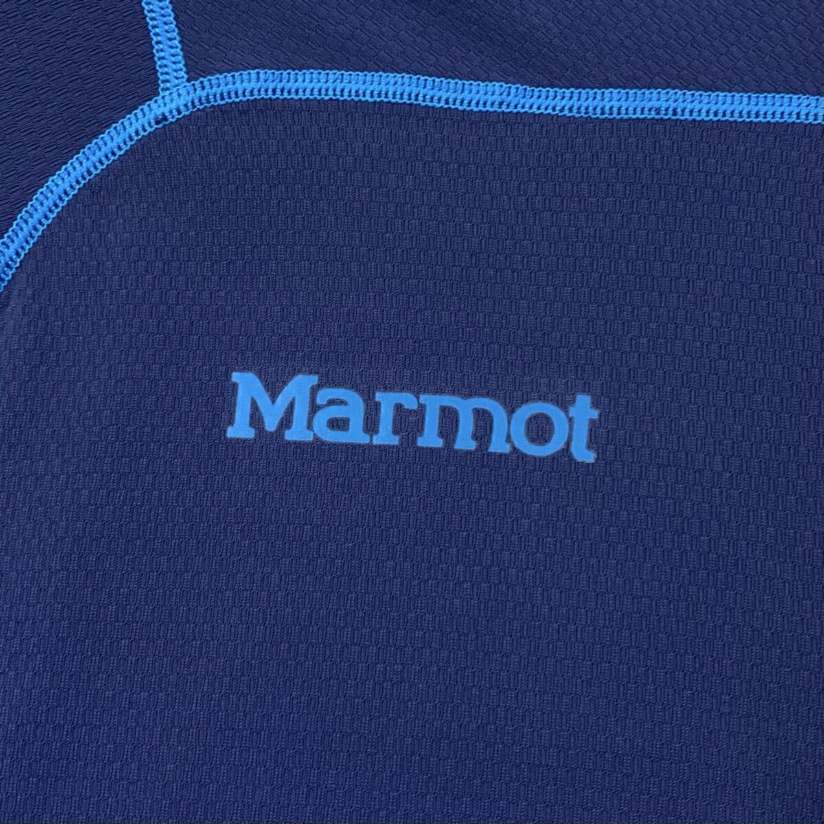 【Marmot(マーモット)ロングスリーブジップシャツ ベースレイヤー プリントロゴ メンズM ネイビー系】