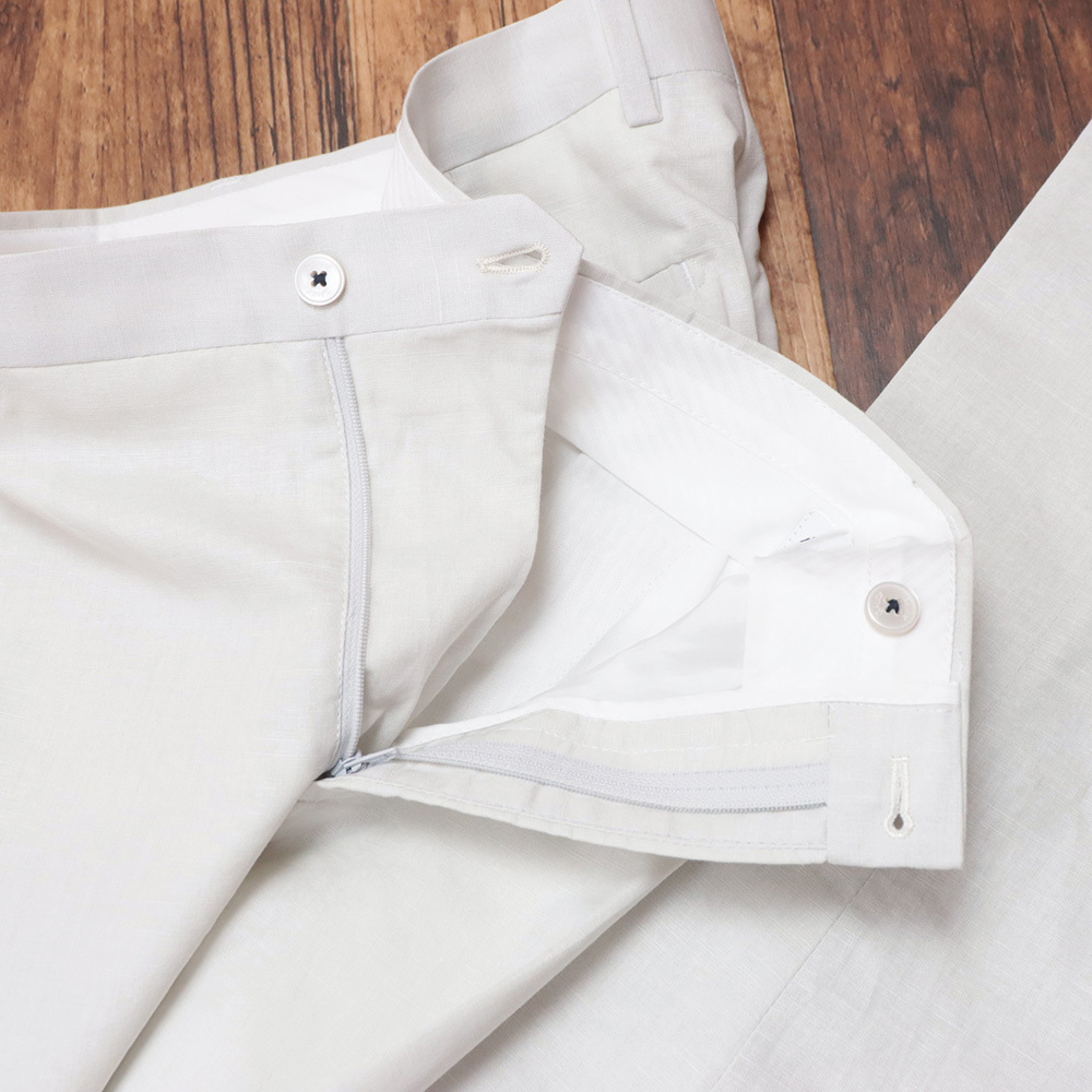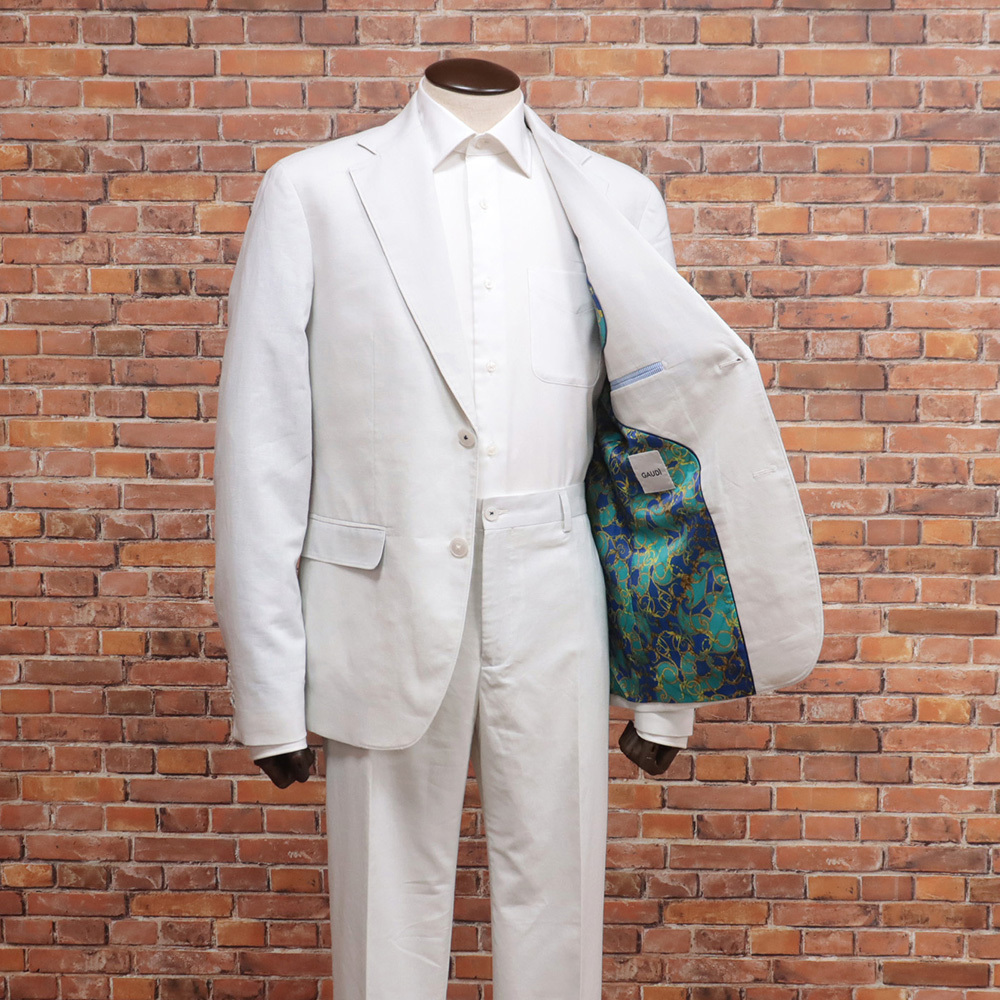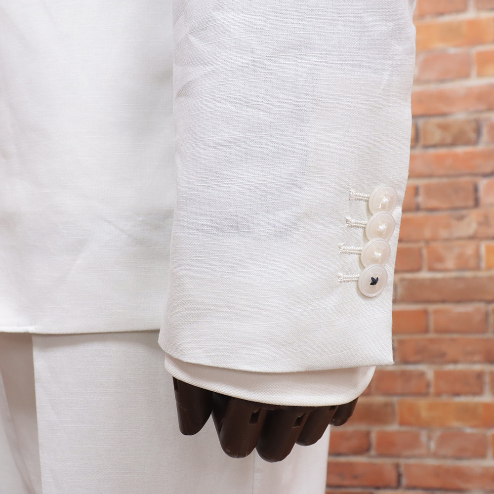 さっぱりと清涼感ある風合いのコットンリネン混生地を使用したスーツ。スタイリングを品良くまとめてくれます。