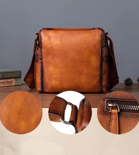 人気美品☆本革 ショルダーバッグ メンズ アンティーク 斜め掛け鞄 メッセンジャーバッグ 多機能 ヌメ革 本革 レザー 縦型 iPad収納