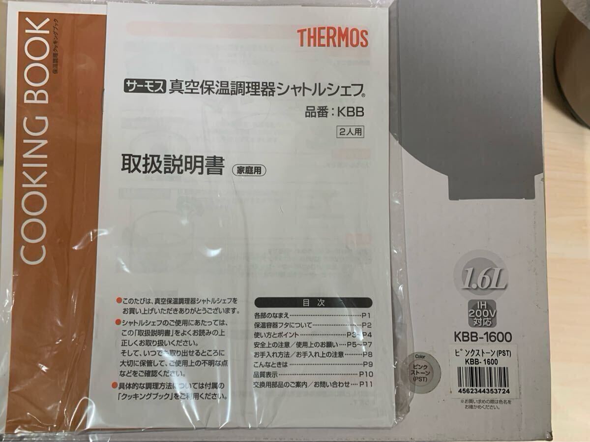 商品:THERMOS サーモス シャトルシェフ 真空保温調理器 KBB-1600 ピンクストーン 調理器具 1.6L 保温料理 調理鍋 蓋 レシピ 本