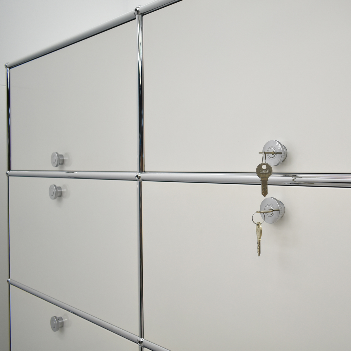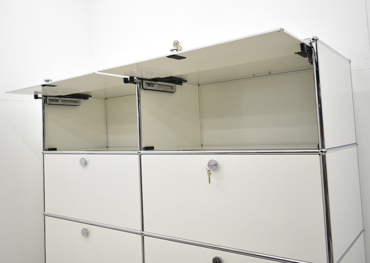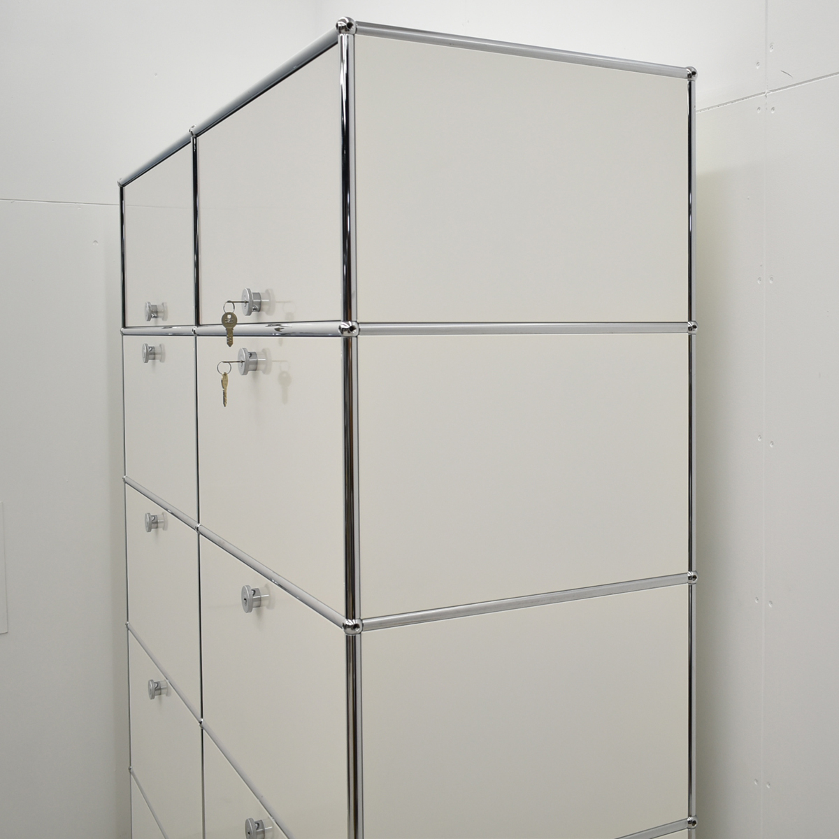 | ■備考 USM Haller ハラーキャビネット 2列5段 ホワイト 幅1525 ユー・エス・エム ハラーのハラーキャビネット・2列5段です。 USMモジュラーファニチャーは、リビングルームやオフィスを機能美あふれる空間に仕立てるオーダーメイドのシステムファニチャーです。時代と共に変化するユーザーのニーズにも対応できるシンプルかつ柔軟なデザインは普及のデザインとして認められ、2001年にニューヨーク近代美術館の永久コレクションとなりました。 ※上段フリップアップドア(右のみ鍵付)、上から2、3、4段共ドロップダウンドア(右のみ鍵付、3段目のみエクステンショントレー付)、最下段エクステンションドア(右のみ鍵付)です。全て鍵なしタイプの把手です。 ※左側最下段のエクステンションドアに小さなヘコミが2か所あります。 ※右側連結チューブを使用しています。 ※右側がすべて鍵付き把手です(鍵2種、各2本、計4本付)。 ※右側一列は分解してのお届けです。 JITBOXチャーター便でのお届けとなります。 4t車が進入できる路上までのお届けとなります。 男性2名以上での荷受けを推奨しております。 かご台車に積載してのお届けとなります。 かご台車からの荷下ろし・建物内への搬入・組み立てなどの作業はお客様にて行っていただく必要がございます。 商品は分解状態でのお届けとなります。 組み立て作業にはボールポイントの六角レンチ(5mm)が必要となりますのでご用意ください(理想的にはボールポイントヘキサゴンソケットロングタイプとラチェットレンチの組み合わせがトルクが出るのでお勧めです)。 自由に配達日を指定することが可能です。配達時間帯は9~18時の中で3時間枠で指定可能です。送料はお見積りとなります。 ●送料例 北海道(道南):54,692円(税込) 宮城県:27,951円(税込) 東京都:16,940円(税込) 新潟県:22,506円(税込) 石川県:28,072円(税込) 愛知県:21,296円(税込) 大阪府:28,072円(税込) 広島県:31,823円(税込) 高知県:42,229円(税込) 福岡県:47,432円(税込) 鹿児島県:52,877円(税込) 沖縄県:72,116円(税込) 4t車が進入できない場所への配送・搬入作業・組立作業等をご希望である場合はお見積りにて対応となりますのでお申し付けください(お見積りできない場合がございます)。 組み立て作業をご希望の場合は自社便配送に変更して弊社(神奈川県)の近県のみ対応させていただきます。 送料・搬入作業費・組み立て工賃はお見積りとなります。 クリーニングとメンテナンスをしっかり行ってお届けします。 この商品の程度は中古品として美品といえます。 多少の擦れや傷はあるものの気になる程ではないでしょう。 御使用端末の環境により多少画像の表示色と実物の色に差違が生じる場合がございますのでご了承ください。 | |
