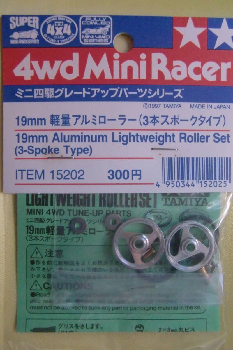 | ★☆タミヤ ミニ四駆グレードアップパーツ 19mm 軽量アルミローラー 3本スポークタイプ 未開封 未使用 当時物 1997年 ITEM 新品☆★ | |