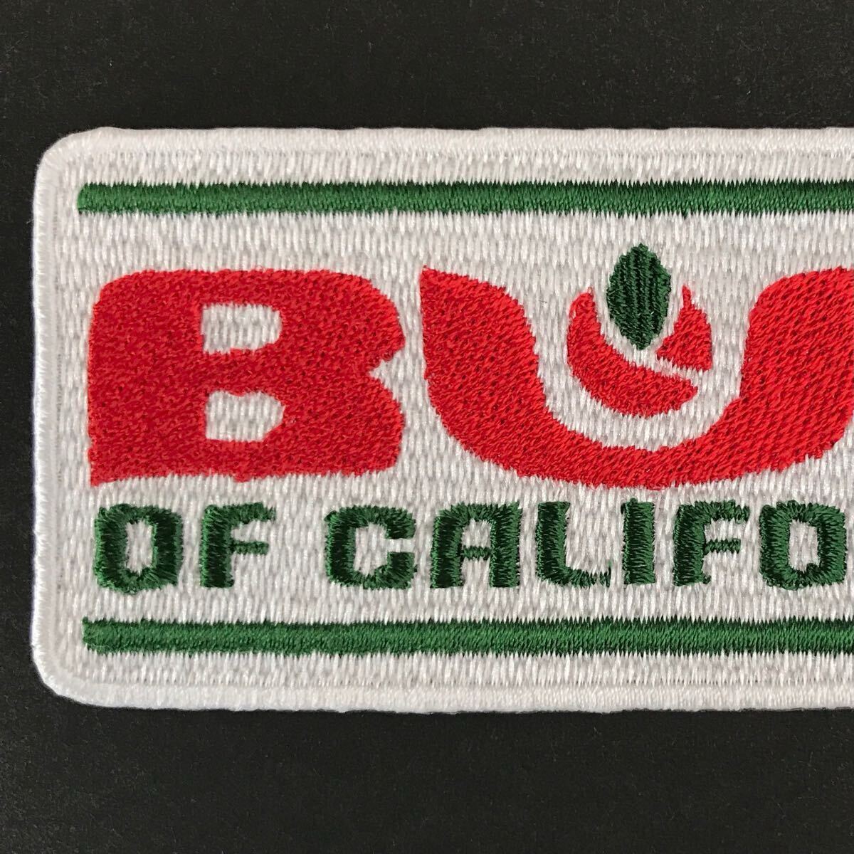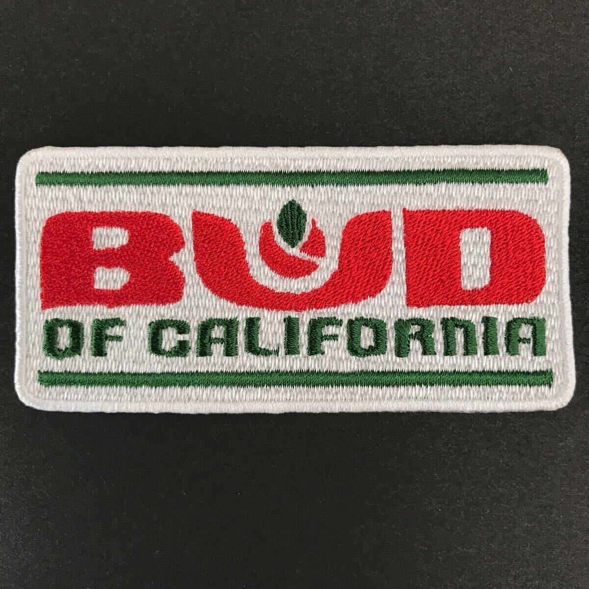 アメリカの食品加工会社に端を発し、現在ではキャップやブルゾンなどワークウェアのアイコンとして有名なBUD OF CALIFORNIAロゴのアイロンワッペンです。