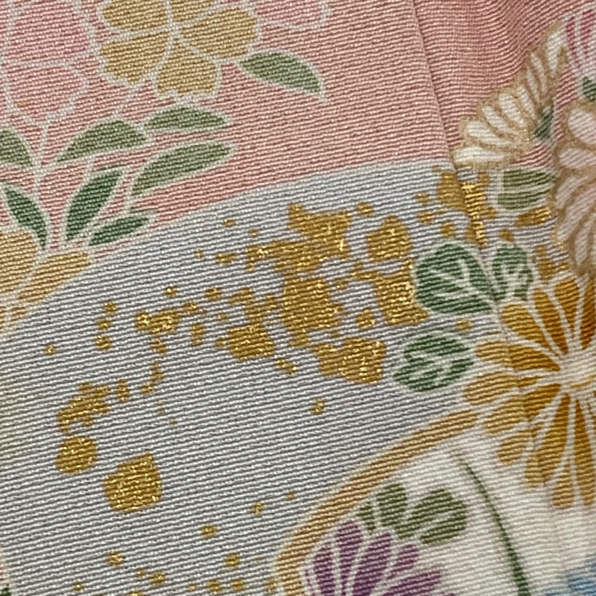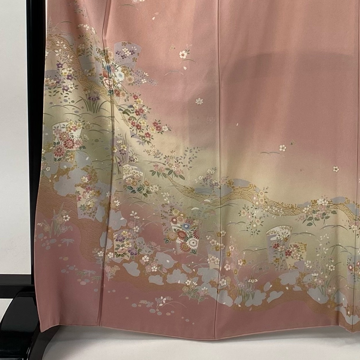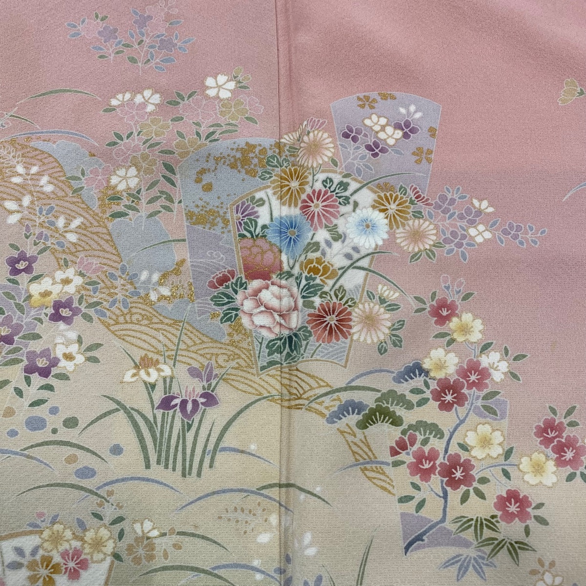 | 訪問着 秀品 草花 波 金彩 ぼかし ピンク 袷 身丈168 裄丈69.5 L 正絹 【中古】 |