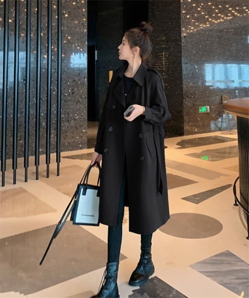 キーワード:トレンチコート コート レディース ロング丈 無地 秋 冬