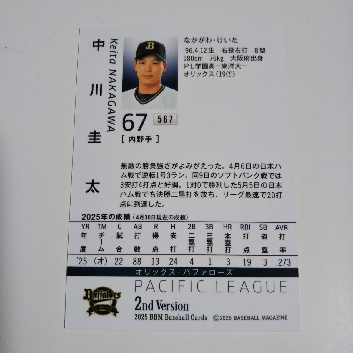 BBM2025 2nd オリックス 中川圭太 銀箔サイン パラレル カード No.567
