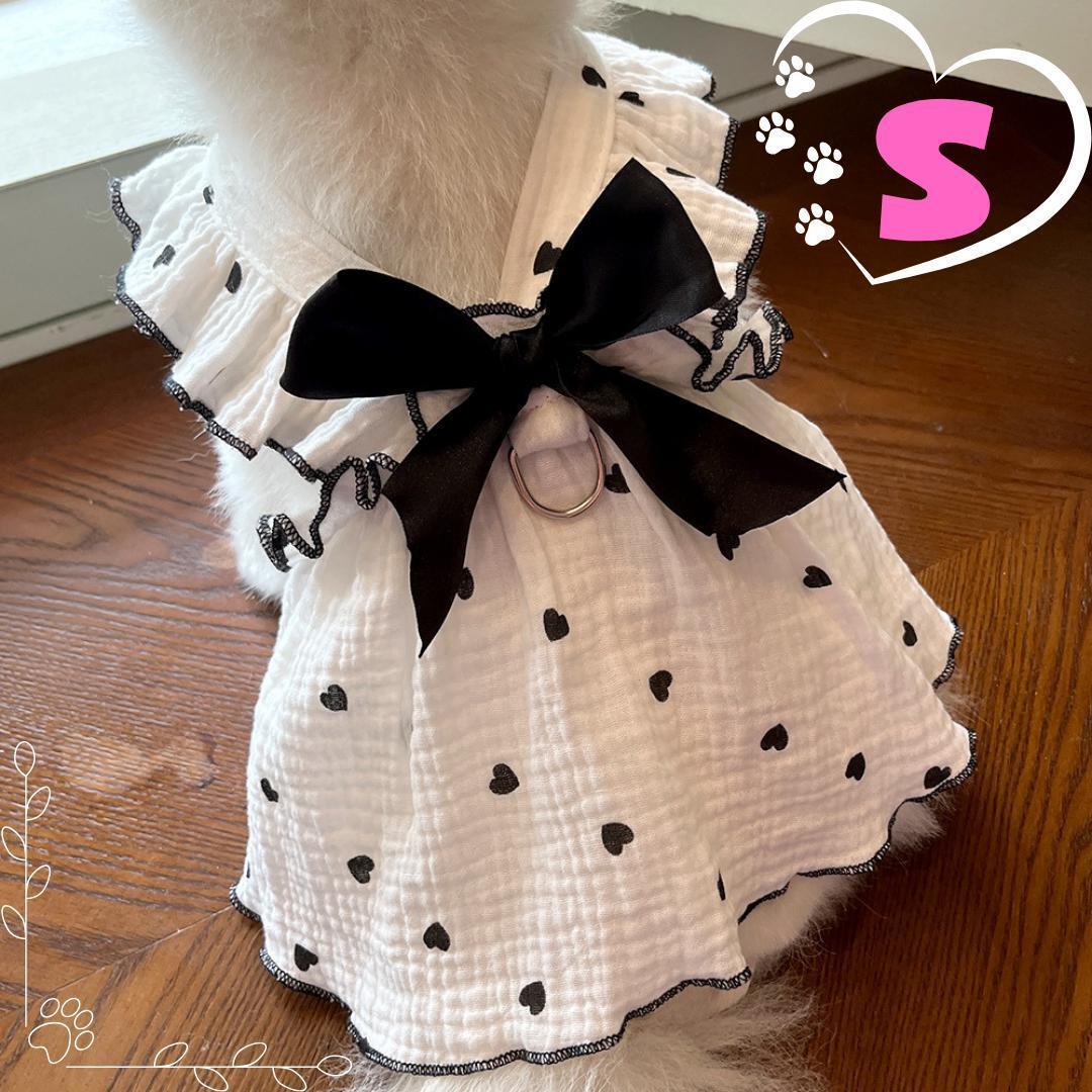 ブラックハート柄が可愛い 春夏用ペットワンピース(Sサイズ)