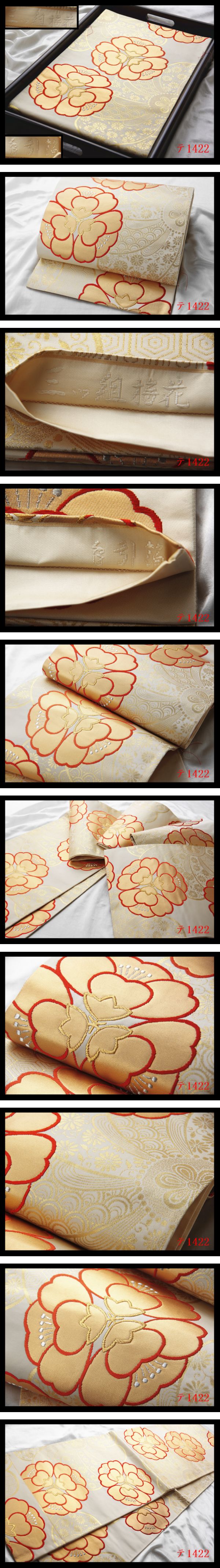 蔵【テ1422】西陣逸品 引箔 三ッ組梅花 気品豊かに 正絹純金糸六通高級美術袋帯 新品同様 ◇検◇簪着物名古屋帯和装小物帯締め
