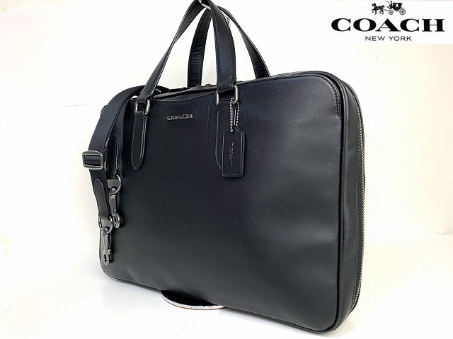 美品★送料無料★ コーチ メンズ COACH レザー グラハム 2Way ビジネスバッグ ブリーフ ショルダー バッグ ブラック