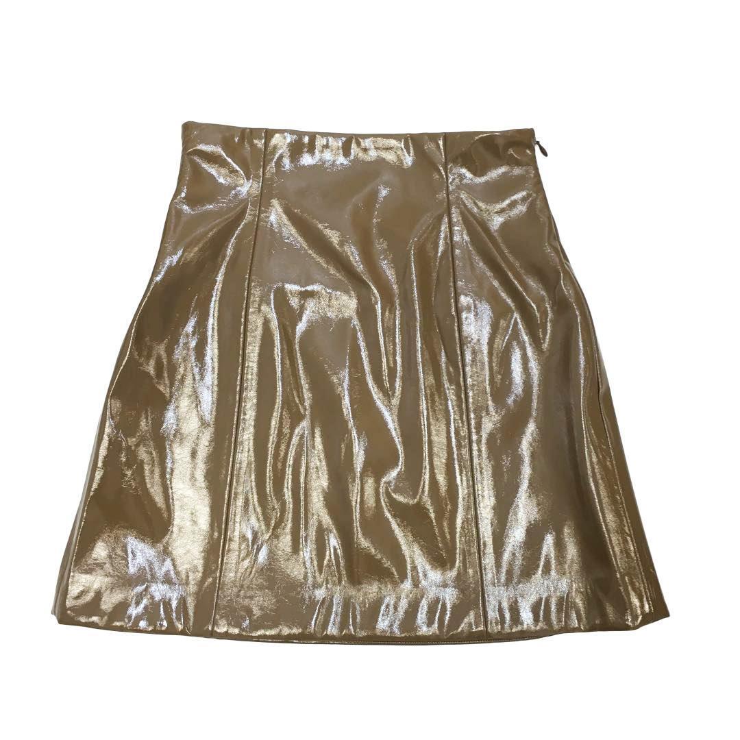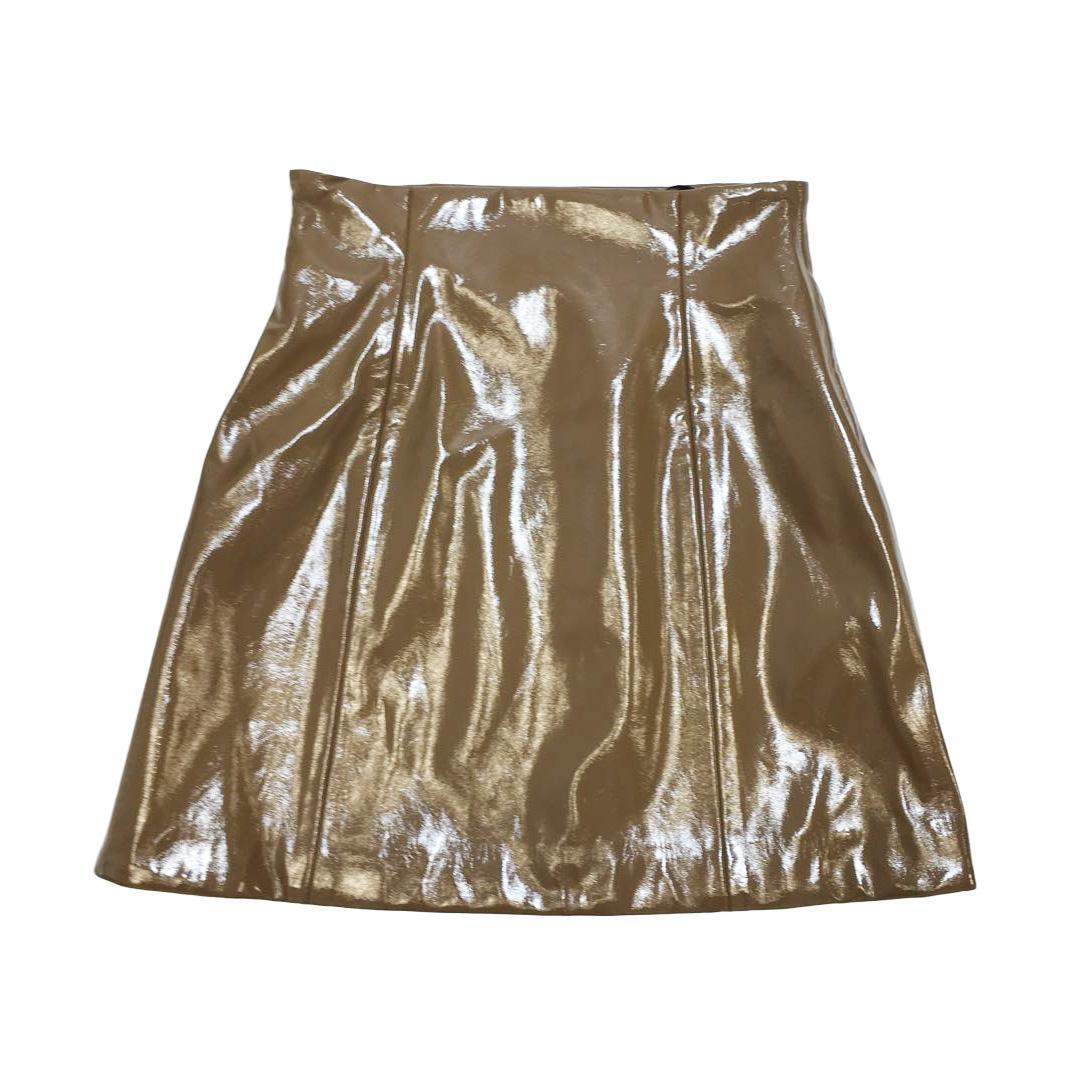 光沢感が魅力的なパテントフェイクレザーを使用したミニスカート