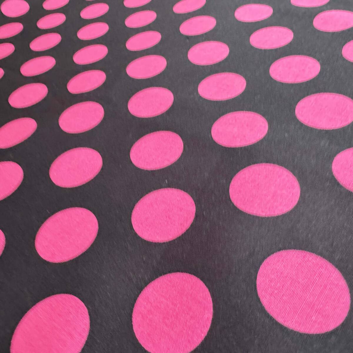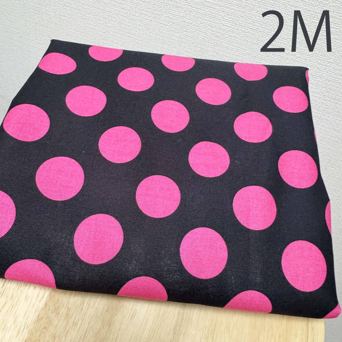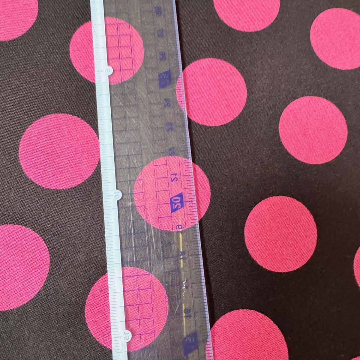 次回未定★黒地×ピンク大玉ドット★綿シーチング生地2m★ポップ&レトロ
