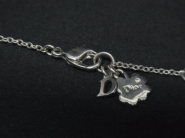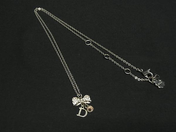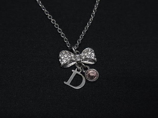 1円 ChristianDior クリスチャンディオール ラインストーン リボン ネックレス ペンダント アクセサリー シルバー系×ピンク系 FR5659
