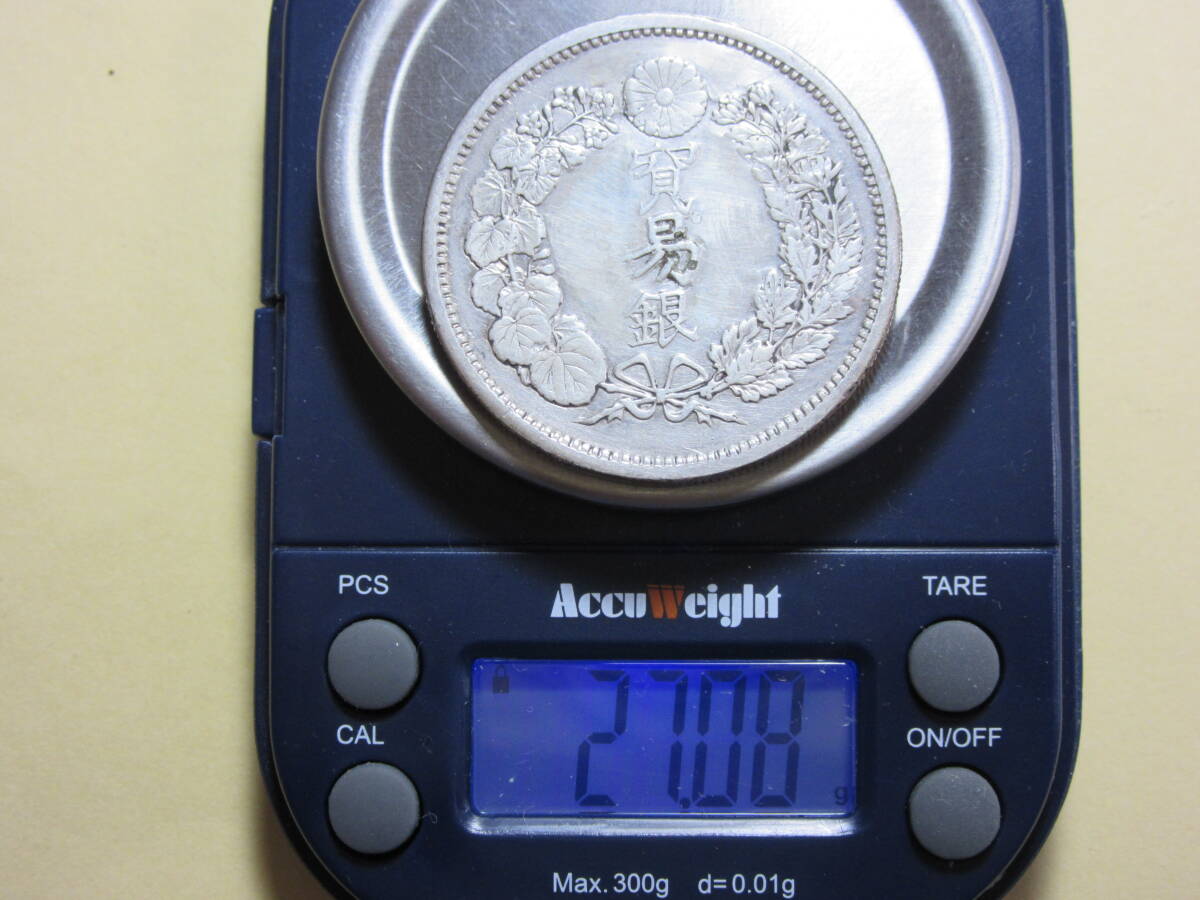 3,貿易銀 修正品 明治9年 27,08g SV900