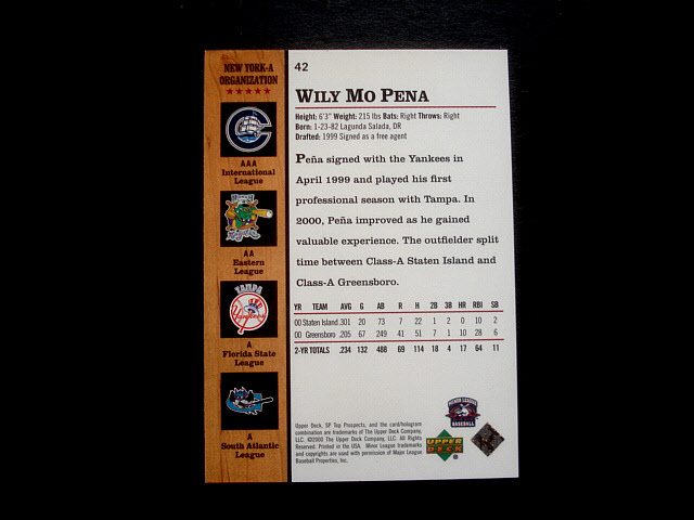 来日外国人選手 W.M.ペーニャ ソフトバンク.オリックス.楽天.千葉ロッテ在籍 マイナーリーグAグリーンズボロ・バッツ2000年 カード