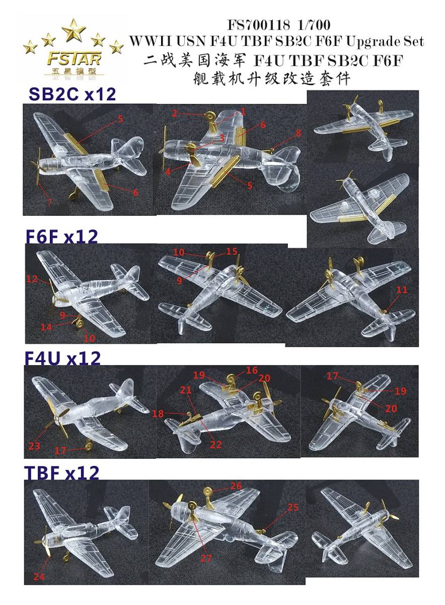 1/700 WWII アメリカ海軍 F4U/TBF/SB2C/F6F エッチングパーツ |