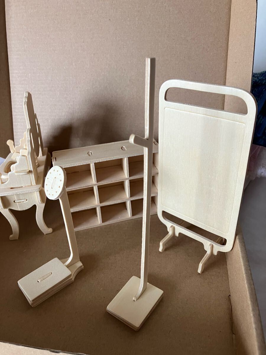 手作り木製ドールハウスのミニチュア 趣味でいろんなおもちゃを作りました。量が増えたので出品します。未使用のまま保管しておりました。