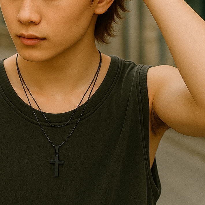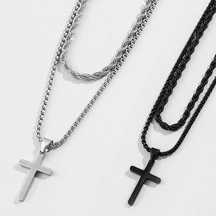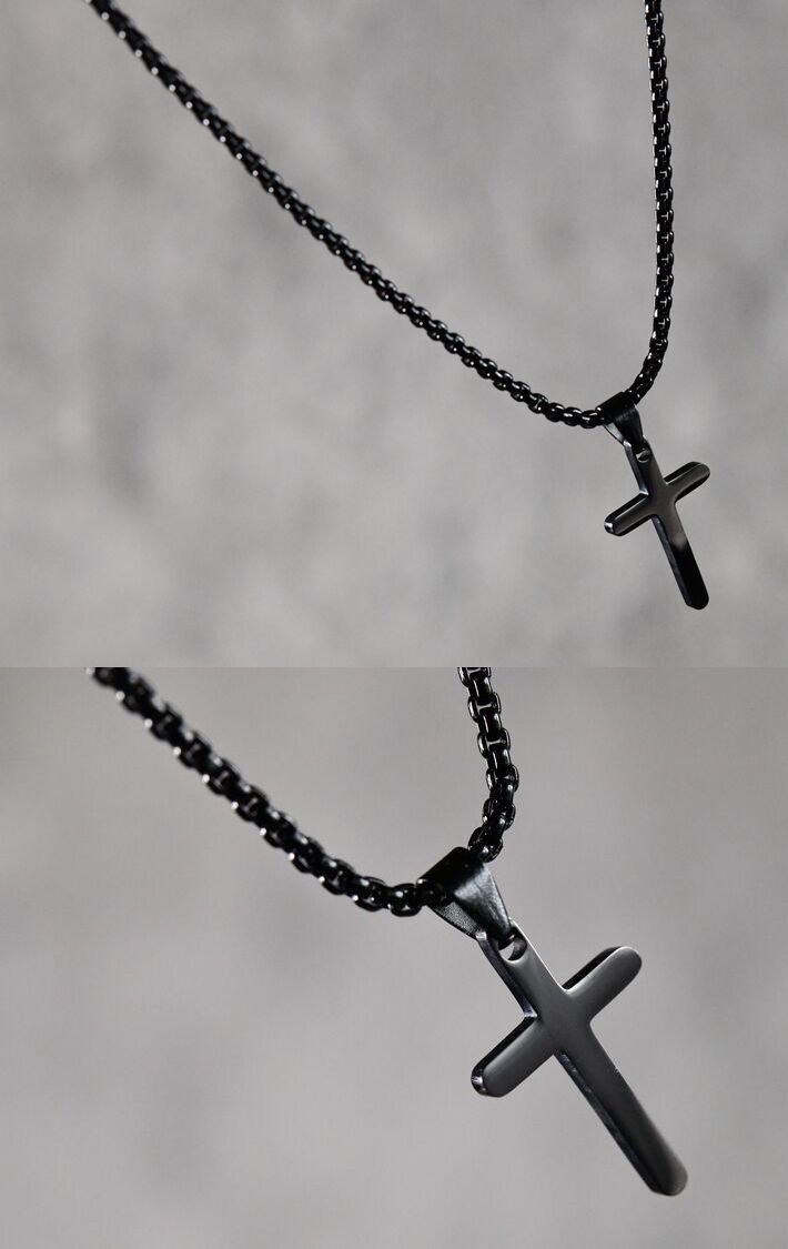 シンプルながら存在感のあるクロスモチーフをあしらったメンズネックレス。