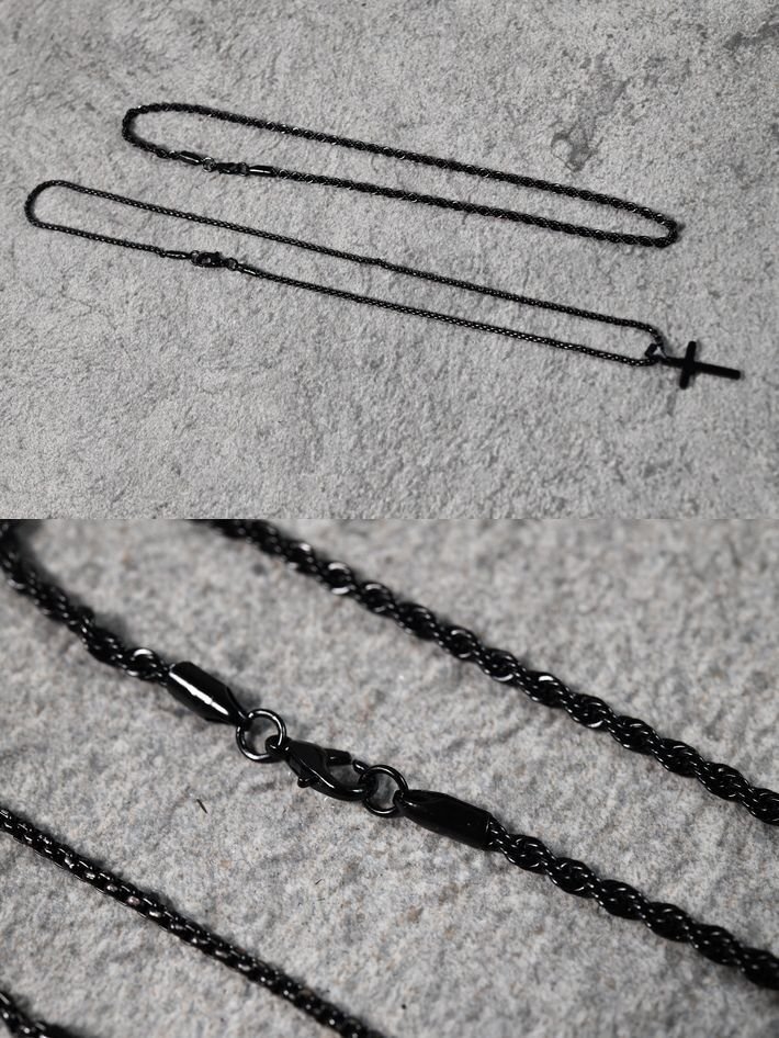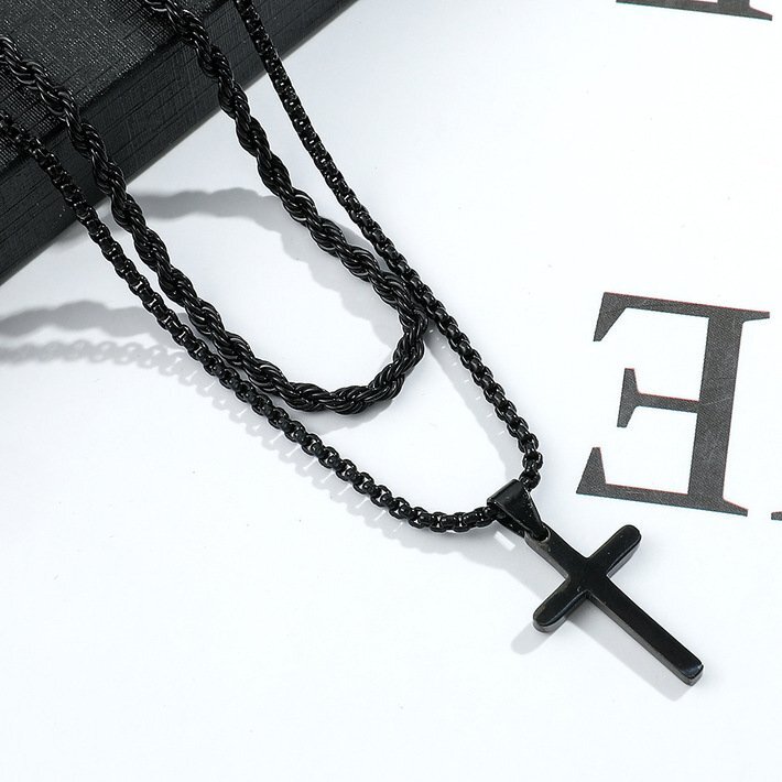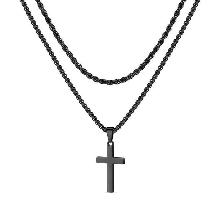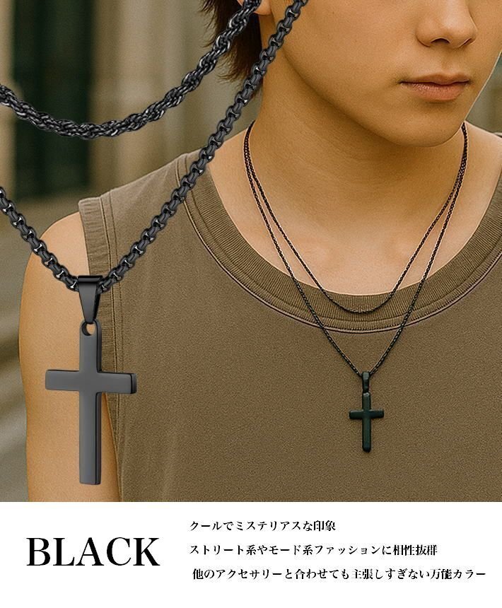 クロス ネックレス メンズ レディース ダブルチェーン仕様 十字架 2連 アクセサリー シンプル おしゃれ 7986670 ブラック 新品
