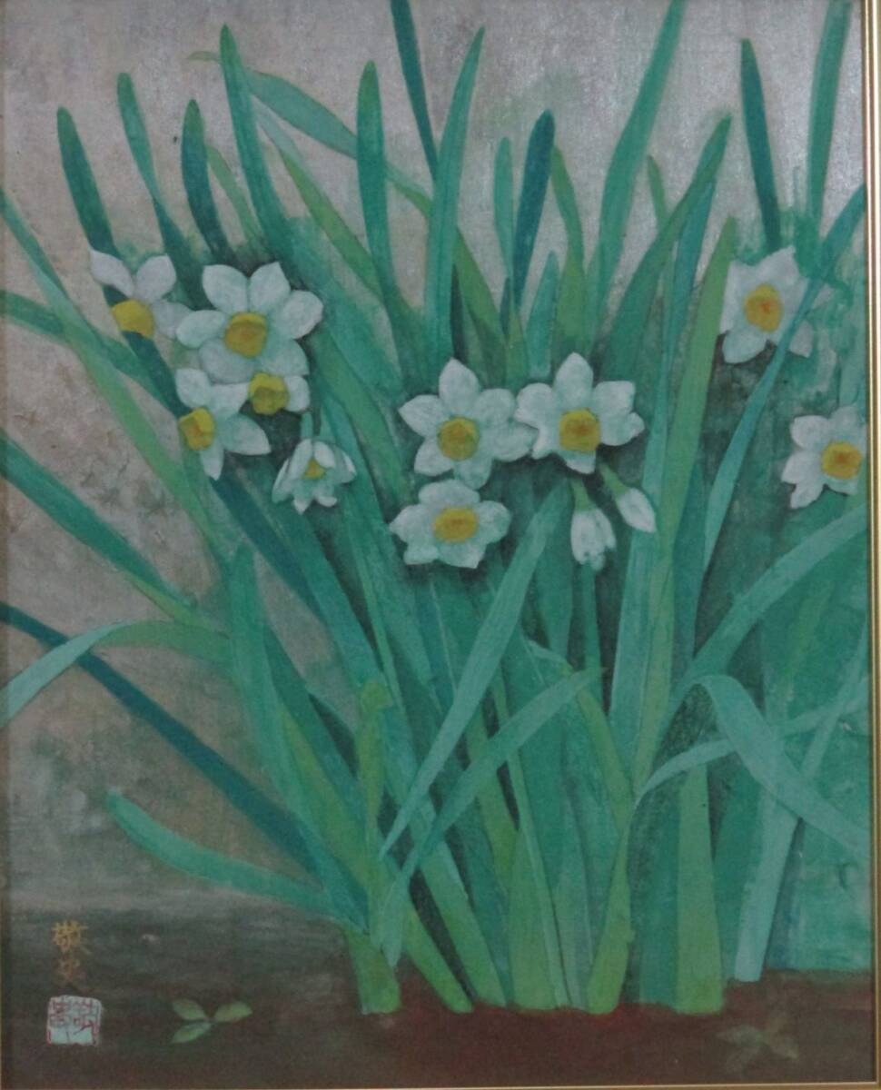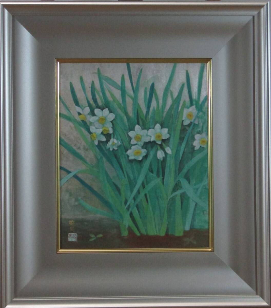 穂高「真作」前田青邨記念大賞 桜井敬史 「水 仙」日本画 3号  共シール